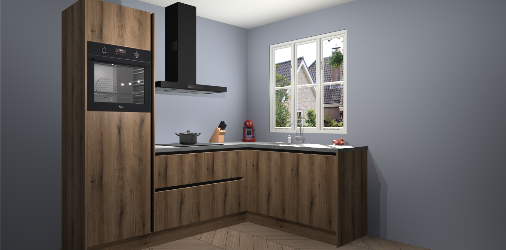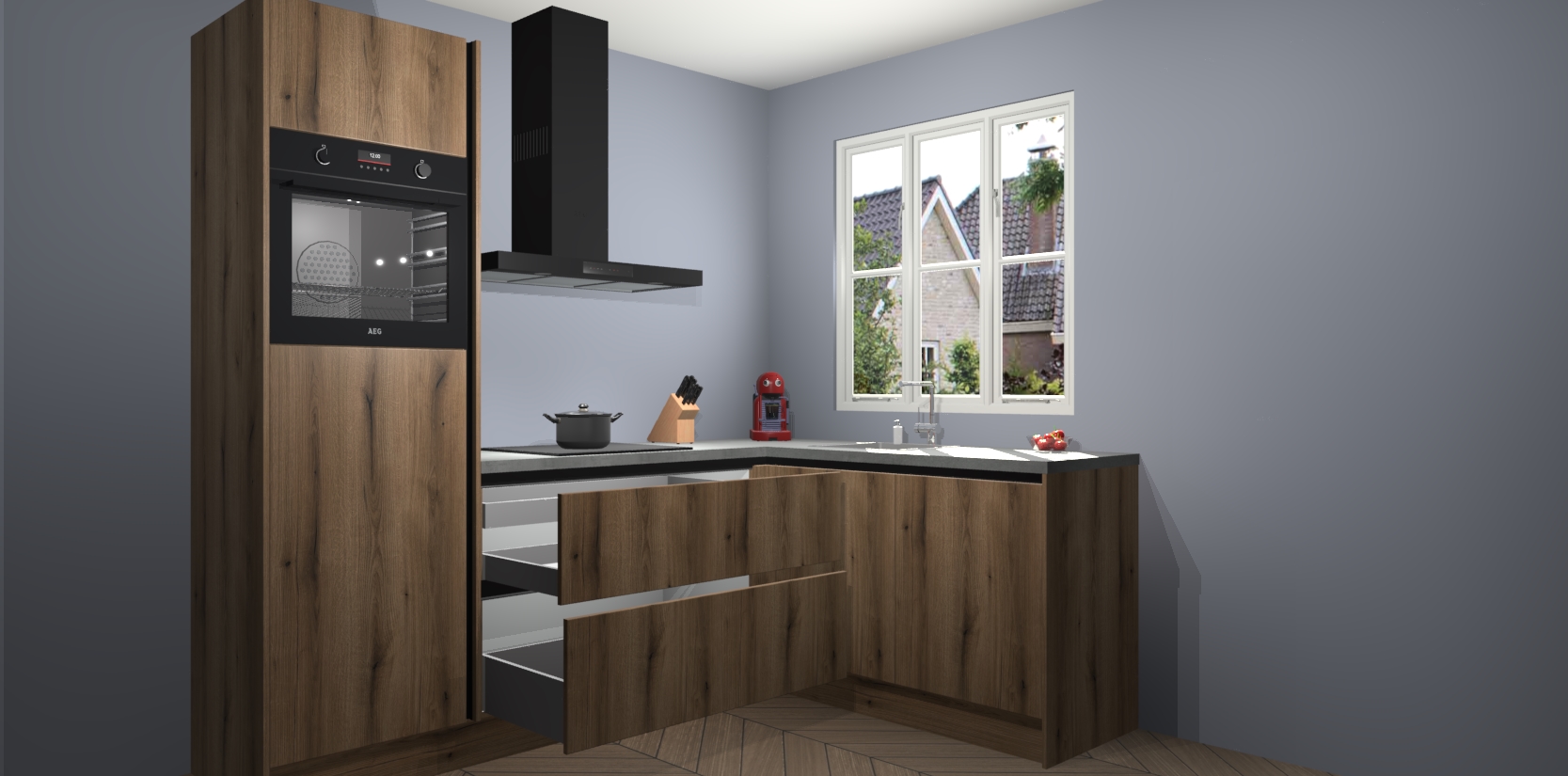 Dit model biedt u voldoende opbergruimte en vijf ingebouwde apparaten: een oven, inductiekookplaat, afzuigkap, vaatwasser en koelkast. Deze apparaten kunnen gemakkelijk worden geüpgrade naar AEG nadat u besteld heeft. De verschillende laden en kastjes bevatten softclose-deuren waardoor ze gezellig dichtvallen met een geruststellend helemaal geruisloos geluid. En dat is nog niet alles! We garanderen ook dat de prijs altijd laag blijft - dus haal nu uw Goud Eiken greeploze keuken Victoria terwijl het kan.
