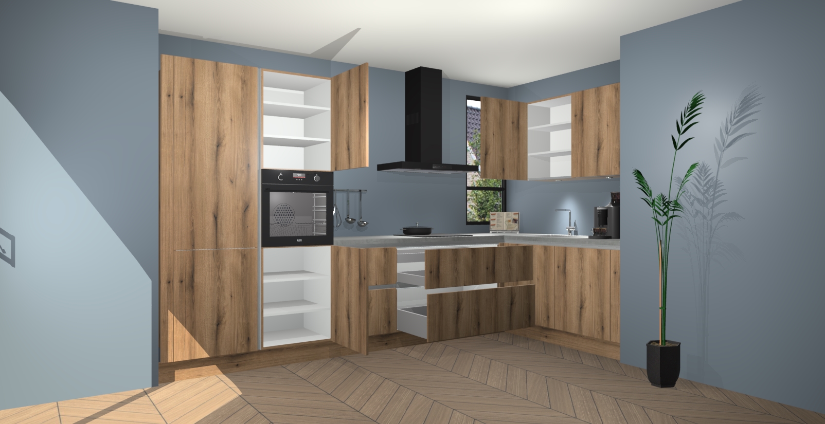 Welkom in uw nieuwe moderne keuken! Laat ons u voorstellen aan de Goud Eiken greeploze keuken Vlaanderen . Deze prachtige hoekkeuken straalt exclusiviteit en luxe uit als geen ander. Het strakke design, de tijdloze kleuren en het greeploze model maken van deze keuken een moderne klassieker. En met voldoende opbergruimte heeft deze keuken echt voor ieder wat wils.