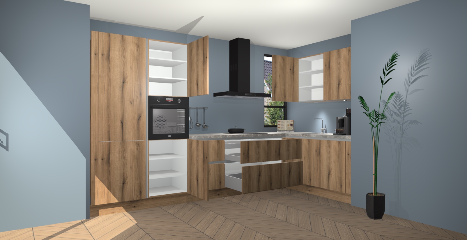 Welkom in uw nieuwe moderne keuken! Laat ons u voorstellen aan de Goud Eiken greeploze keuken Vlaanderen . Deze prachtige hoekkeuken straalt exclusiviteit en luxe uit als geen ander. Het strakke design, de tijdloze kleuren en het greeploze model maken van deze keuken een moderne klassieker. En met voldoende opbergruimte heeft deze keuken echt voor ieder wat wils.