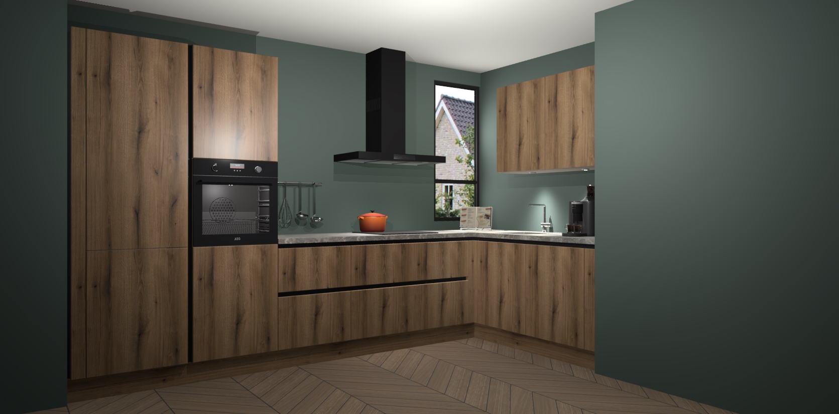 Welkom in uw nieuwe moderne keuken! Laat ons u voorstellen aan de Goud Eiken greeploze keuken Vlaanderen . Deze prachtige hoekkeuken straalt exclusiviteit en luxe uit als geen ander. Het strakke design, de tijdloze kleuren en het greeploze model maken van deze keuken een moderne klassieker. En met voldoende opbergruimte heeft deze keuken echt voor ieder wat wils.