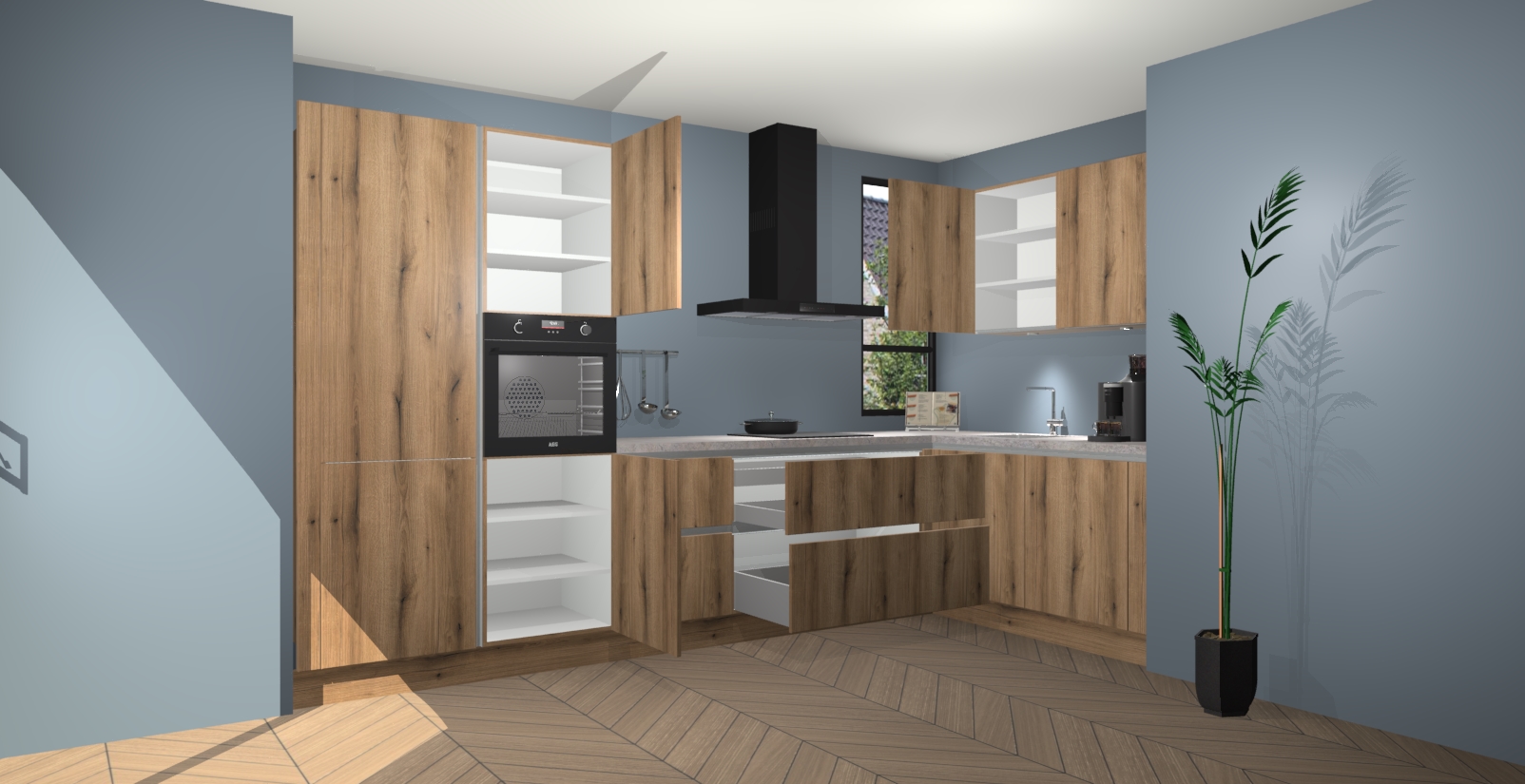 Welkom in uw nieuwe moderne keuken! Laat ons u voorstellen aan de Goud Eiken greeploze keuken Vlaanderen . Deze prachtige hoekkeuken straalt exclusiviteit en luxe uit als geen ander. Het strakke design, de tijdloze kleuren en het greeploze model maken van deze keuken een moderne klassieker. En met voldoende opbergruimte heeft deze keuken echt voor ieder wat wils.