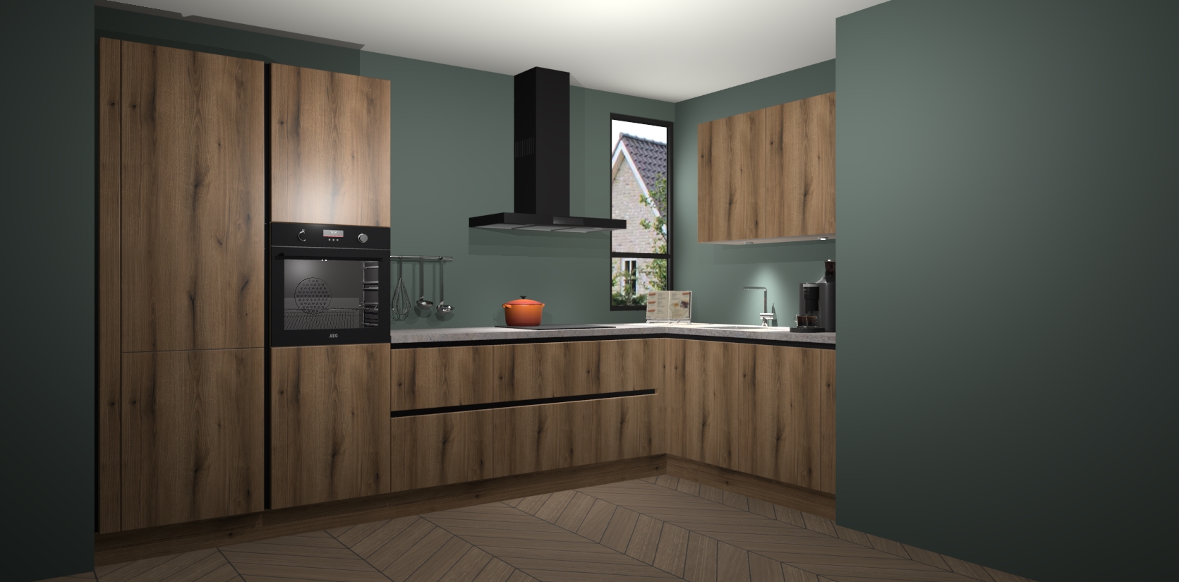 Welkom in uw nieuwe moderne keuken! Laat ons u voorstellen aan de Goud Eiken greeploze keuken Vlaanderen . Deze prachtige hoekkeuken straalt exclusiviteit en luxe uit als geen ander. Het strakke design, de tijdloze kleuren en het greeploze model maken van deze keuken een moderne klassieker. En met voldoende opbergruimte heeft deze keuken echt voor ieder wat wils.