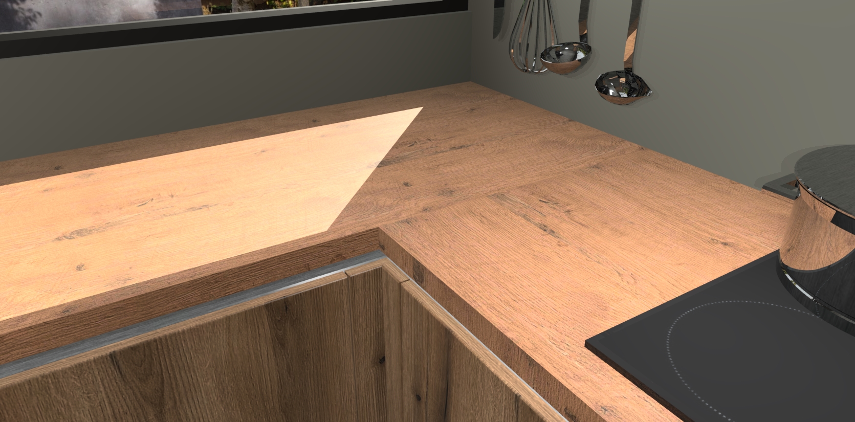 - Bij een hoekwerkblad zijn de hoeken in gevreesd en op maat gemaakt