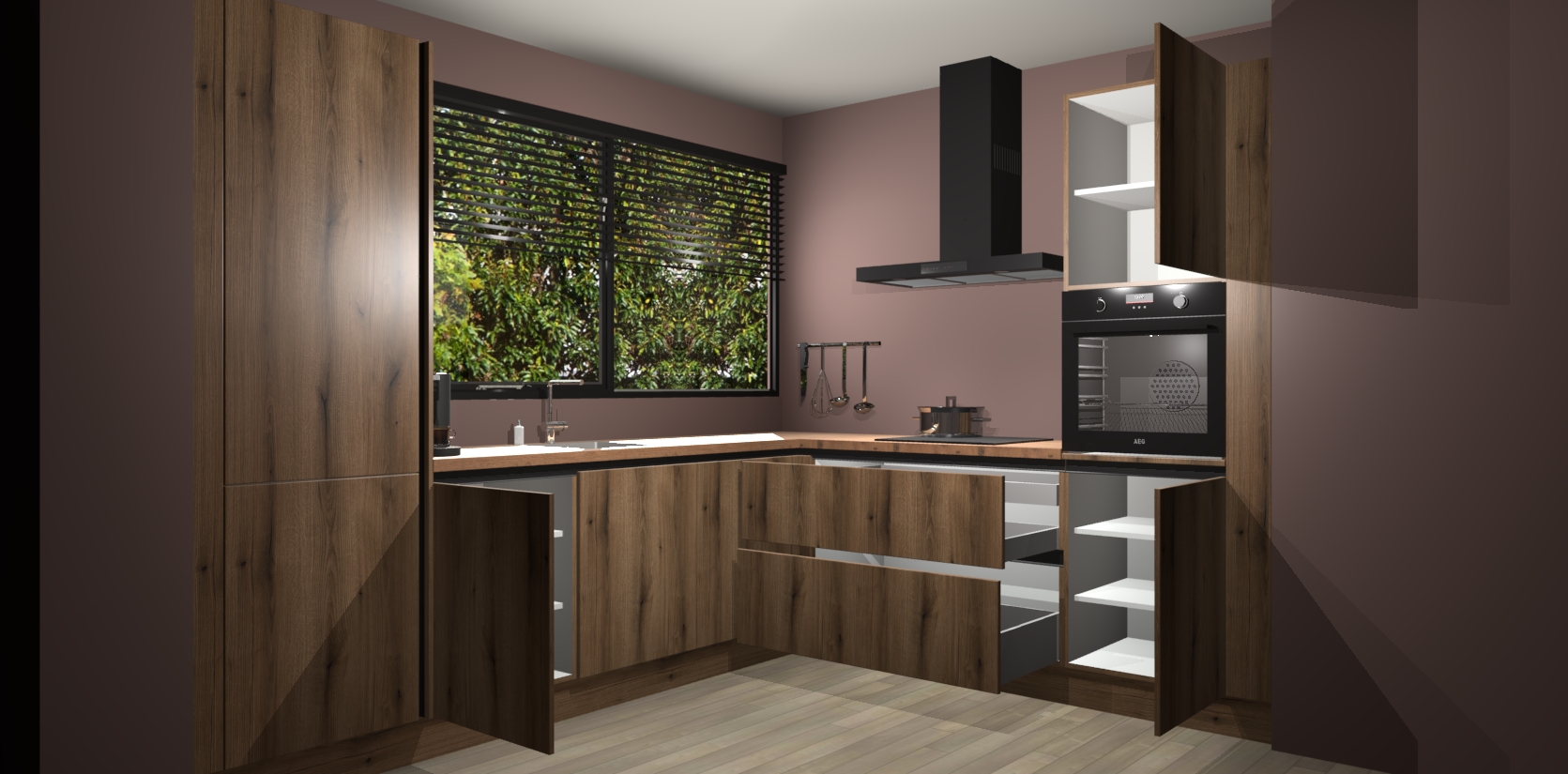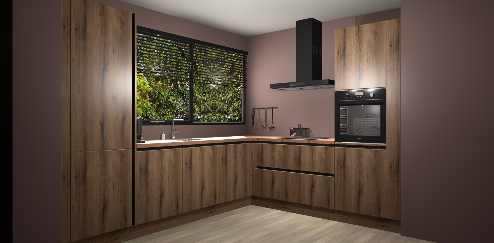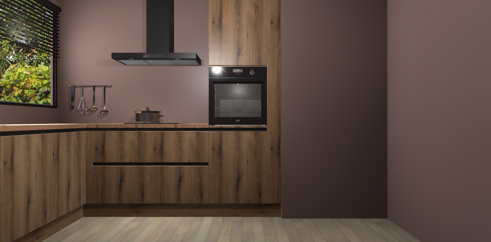 Met een modern, tijdloos design en ruime opslagruimte, zult u zich in no-time thuis voelen in uw nieuwe keuken. Uw leven wordt eenvoudiger met de soft-close deuren die voor het ultieme stille comfort zorgen - geen geluid dat u stoort terwijl u kookt. Ook is de keuken voorzien van 5 ingebouwde apparaten: een oven, inductie kookplaat, afzuigkap, vaatwasser en koelkast. Deze kunnen gemakkelijk na bestelling worden bijgewerkt naar AEG - waardoor uw luxe ervaring compleet is.