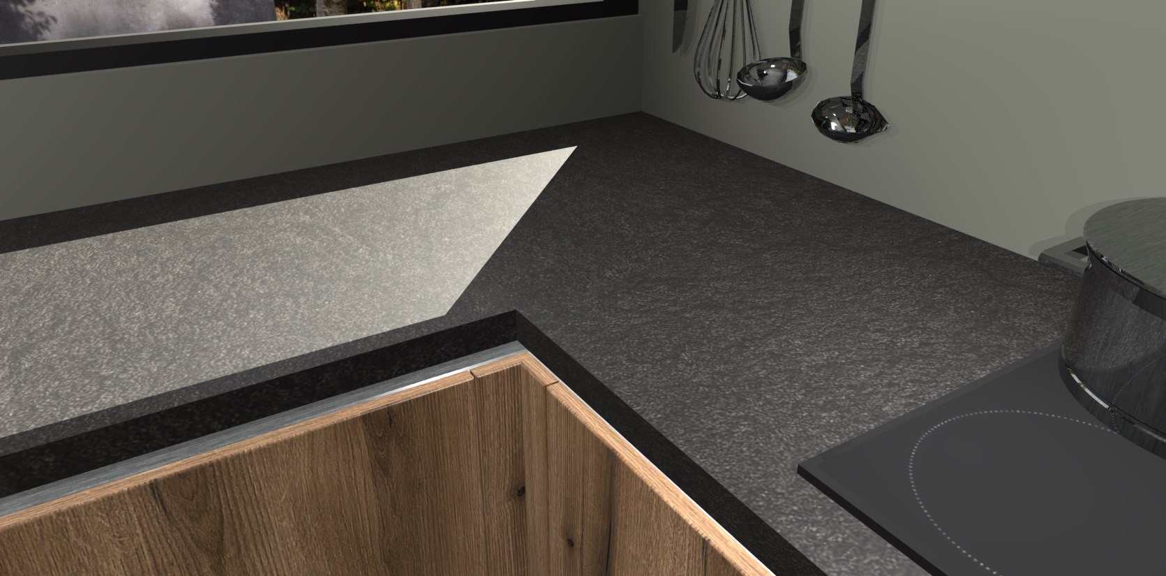 - Bij een hoekwerkblad zijn de hoeken in gevreesd en op maat gemaakt
