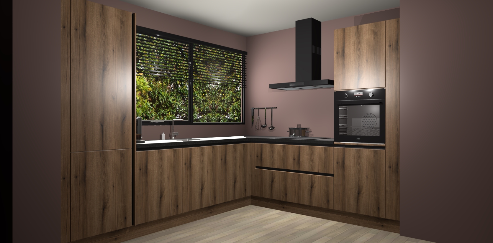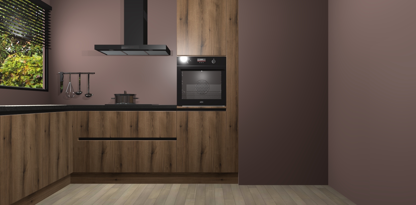 Met een modern, tijdloos design en ruime opslagruimte, zult u zich in no-time thuis voelen in uw nieuwe keuken. Uw leven wordt eenvoudiger met de soft-close deuren die voor het ultieme stille comfort zorgen - geen geluid dat u stoort terwijl u kookt. Ook is de keuken voorzien van 5 ingebouwde apparaten: een oven, inductie kookplaat, afzuigkap, vaatwasser en koelkast. Deze kunnen gemakkelijk na bestelling worden bijgewerkt naar AEG - waardoor uw luxe ervaring compleet is.