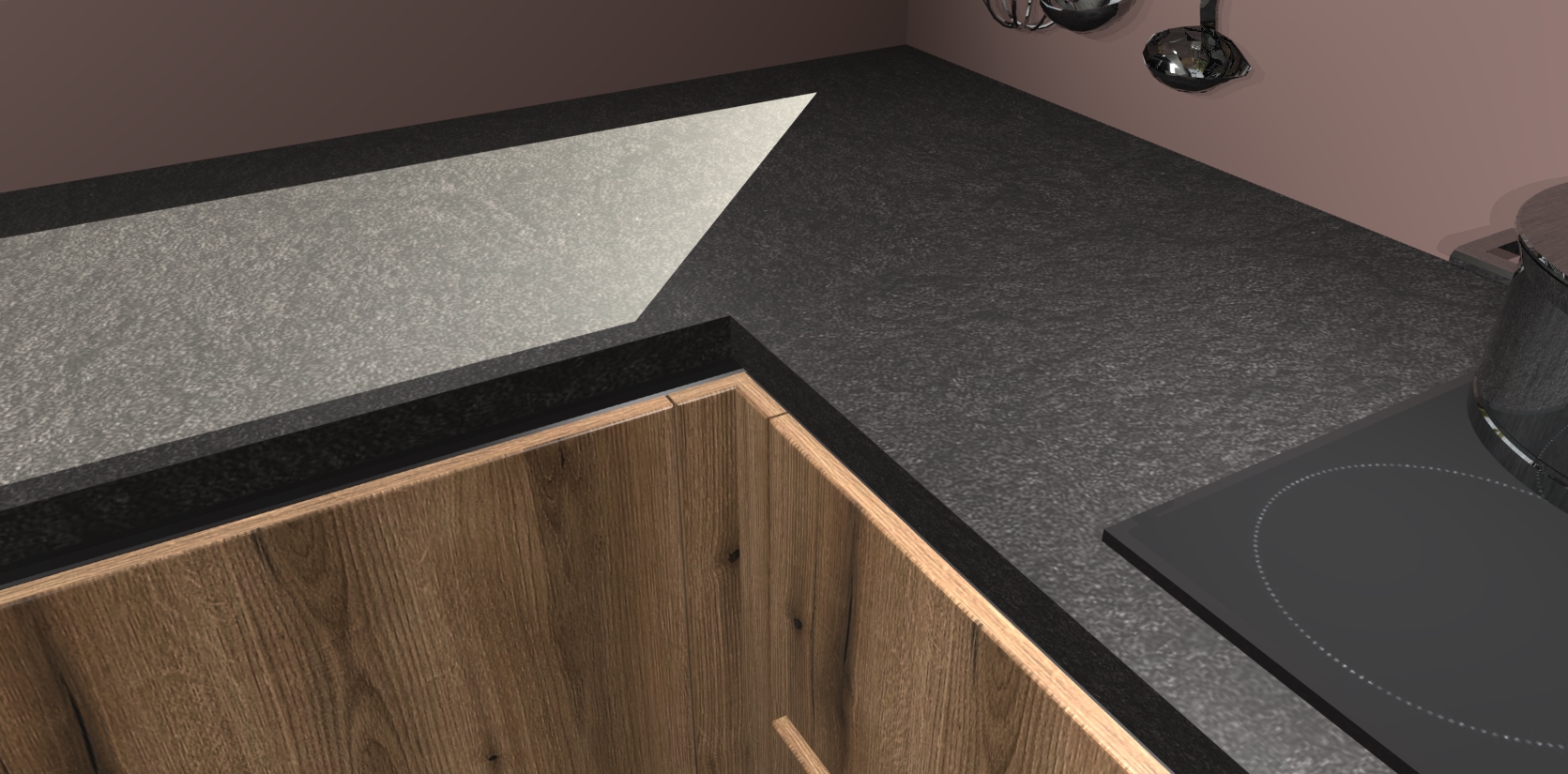- Bij een hoekwerkblad zijn de hoeken in gevreesd en op maat gemaakt