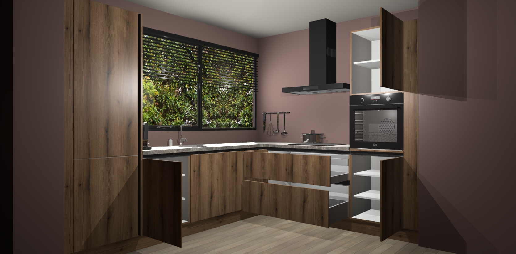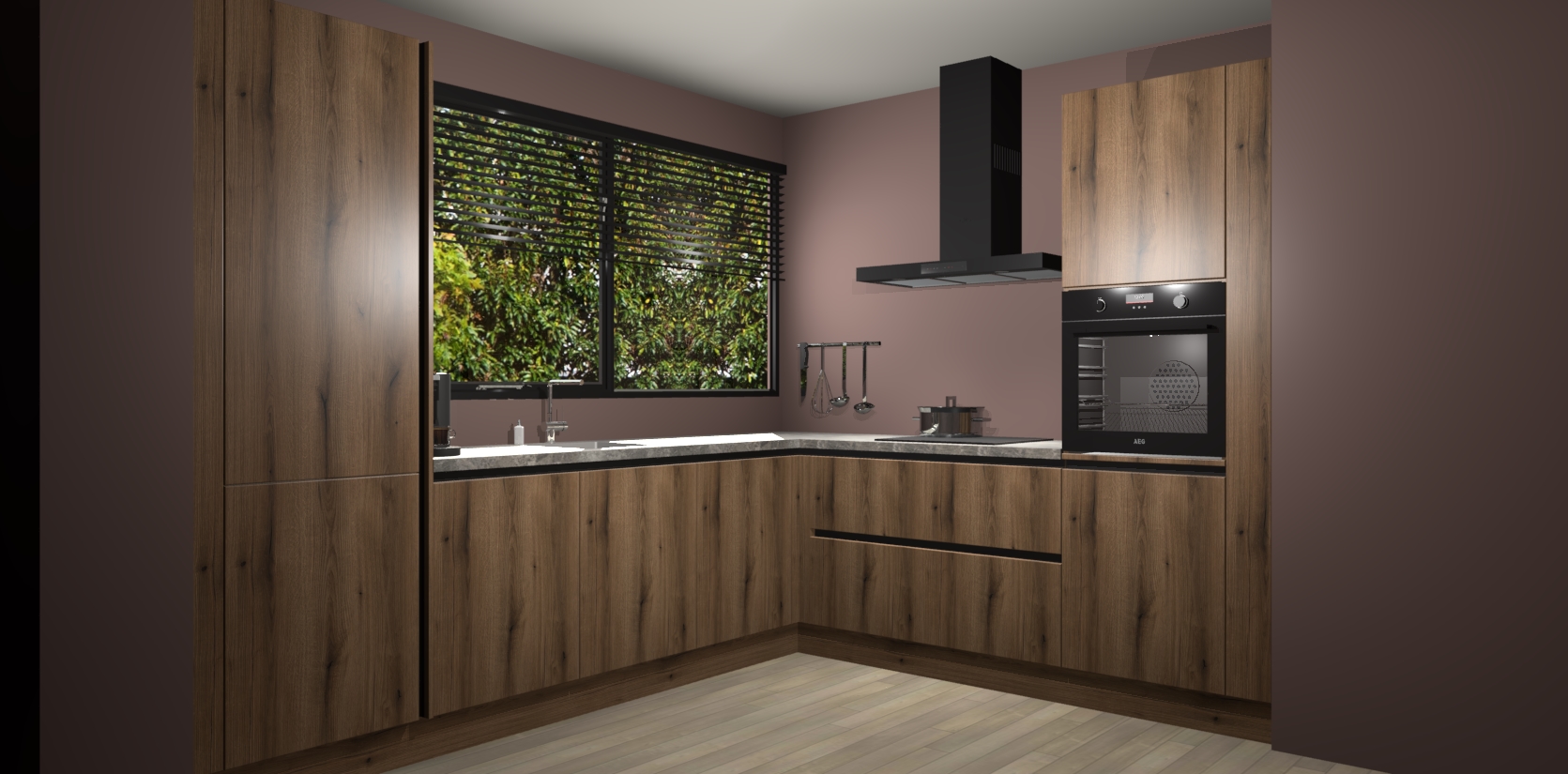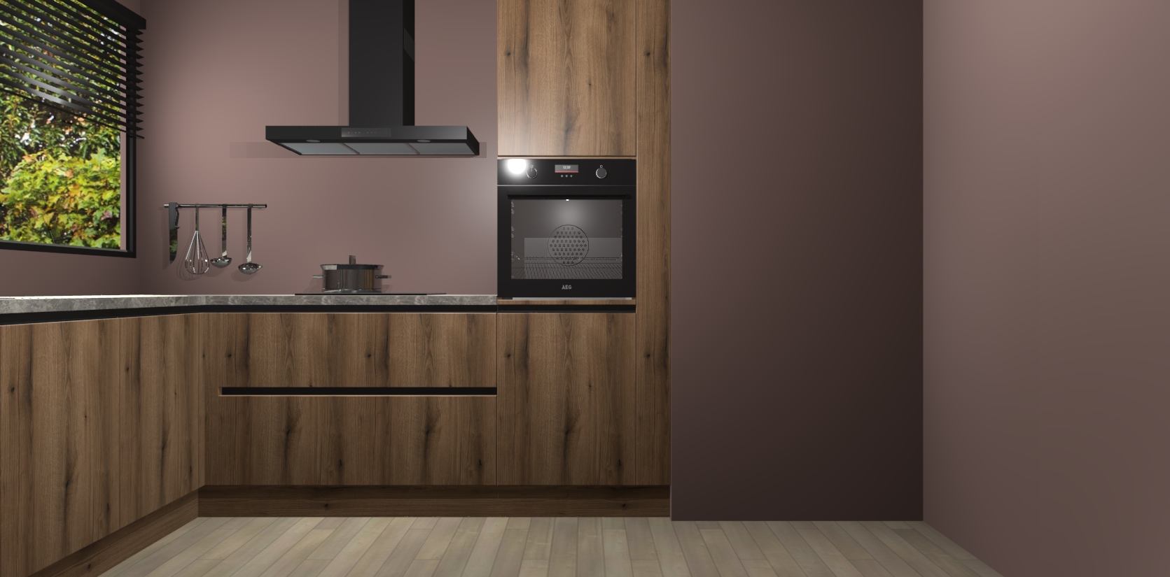 Met een modern, tijdloos design en ruime opslagruimte, zult u zich in no-time thuis voelen in uw nieuwe keuken. Uw leven wordt eenvoudiger met de soft-close deuren die voor het ultieme stille comfort zorgen - geen geluid dat u stoort terwijl u kookt. Ook is de keuken voorzien van 5 ingebouwde apparaten: een oven, inductie kookplaat, afzuigkap, vaatwasser en koelkast. Deze kunnen gemakkelijk na bestelling worden bijgewerkt naar AEG - waardoor uw luxe ervaring compleet is.