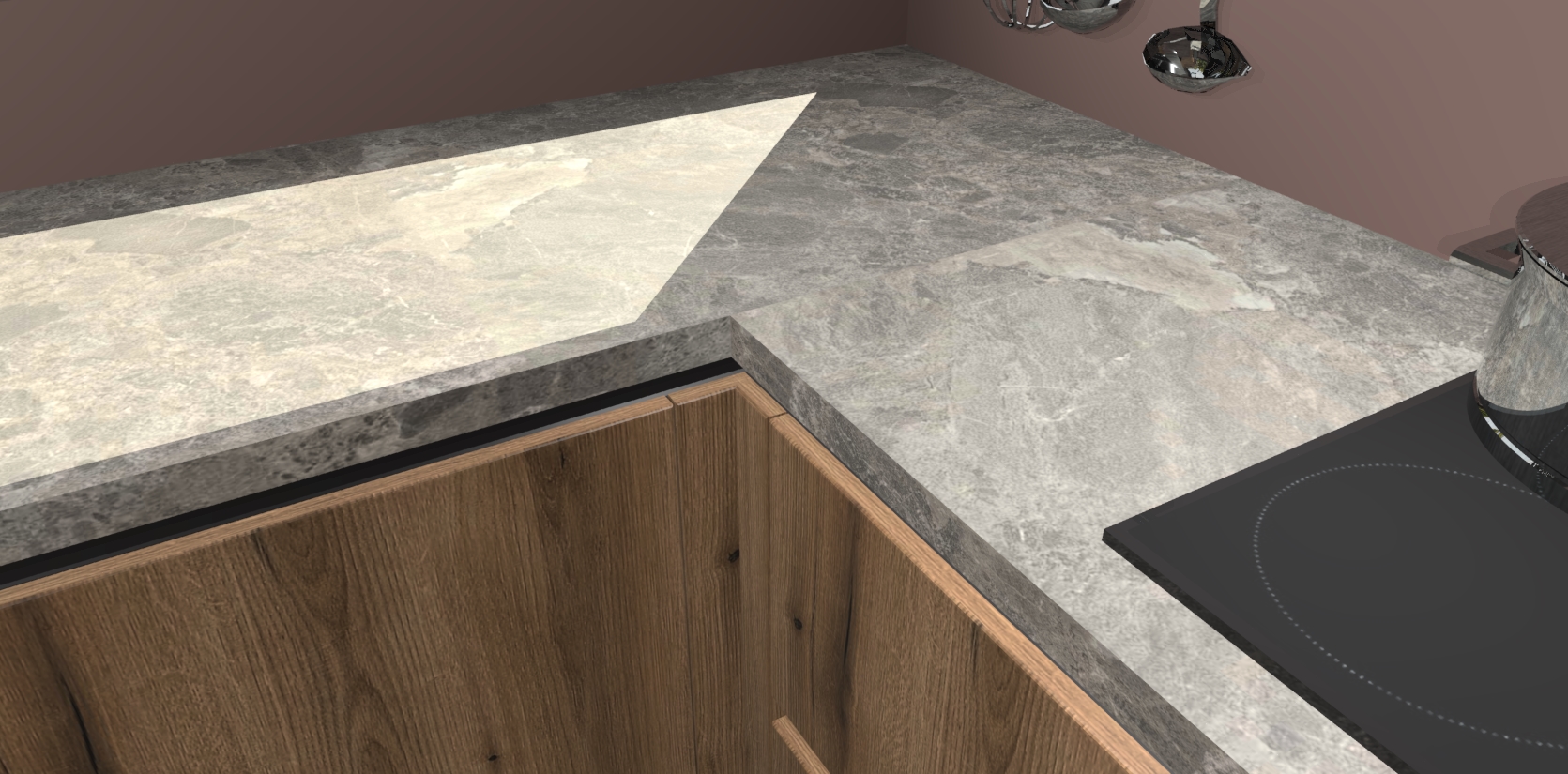 - Bij een hoekwerkblad zijn de hoeken in gevreesd en op maat gemaakt