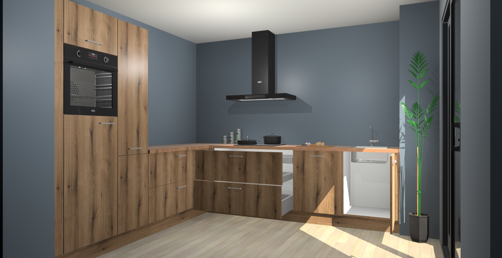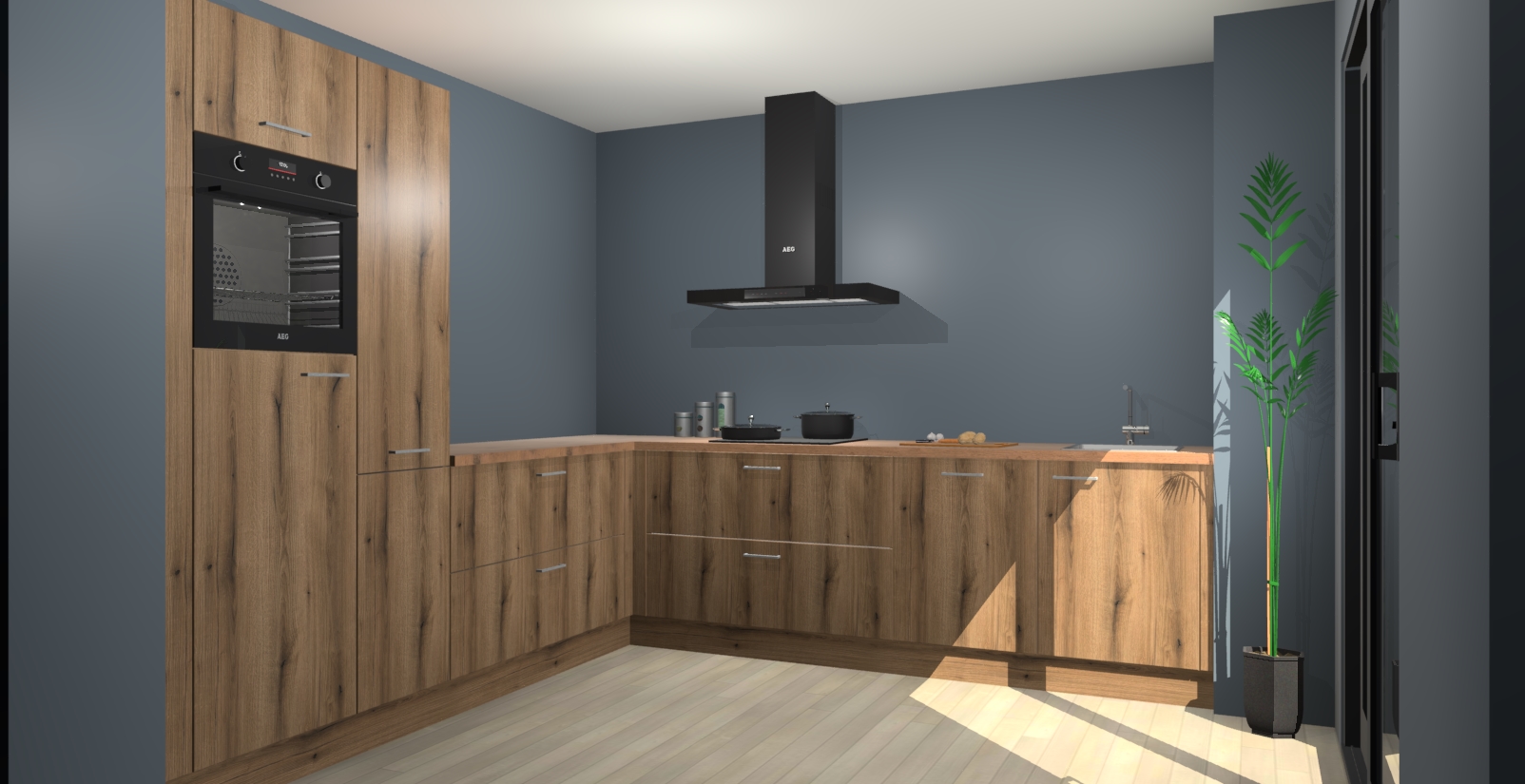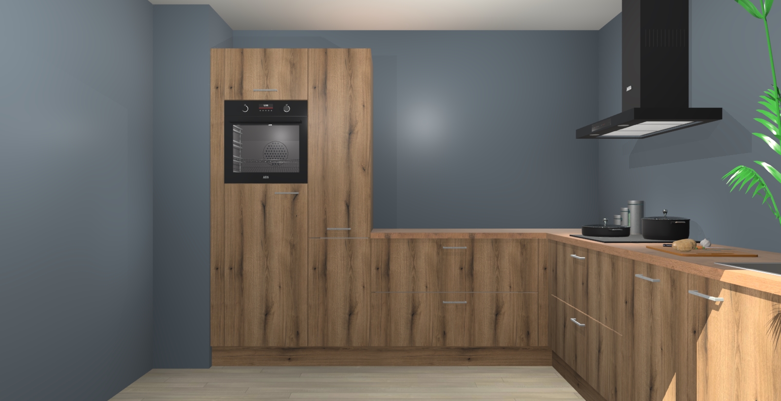 Laat u verrassen door de nieuwste en meest innovatieve keuken van dit moment: De Goud Eiken keuken Antibes. Deze chique keuken straalt een stijlvolle sfeer uit die zeker bewondering zal oogsten bij uw gasten. Als u op zoek bent naar voldoende opbergruimte voor al uw keukengadgets en -gerei, dan is dit de perfecte oplossing. Met ingebouwde apparatuur zoals een oven, inductiekookplaat, afzuigkap, vaatwasser en koelkast! U krijgt niet alleen veel opbergruimte, maar ook een betrouwbaar soft close-deursysteem dat ervoor zorgt dat er nooit meer kastdeuren dichtslaan!