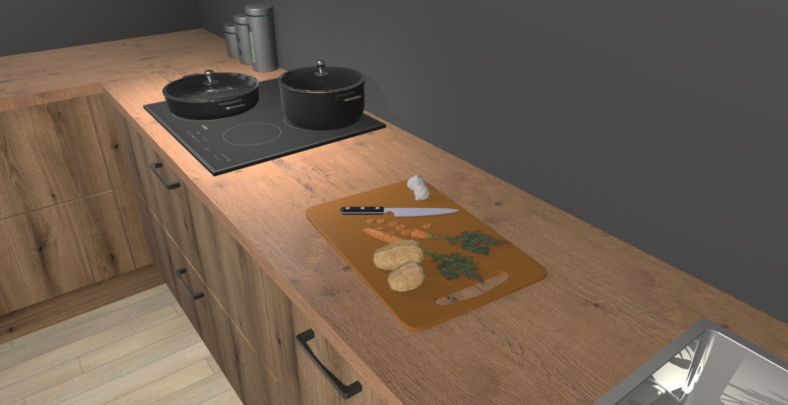 Inclusief plinten, stelpoten en werkblad