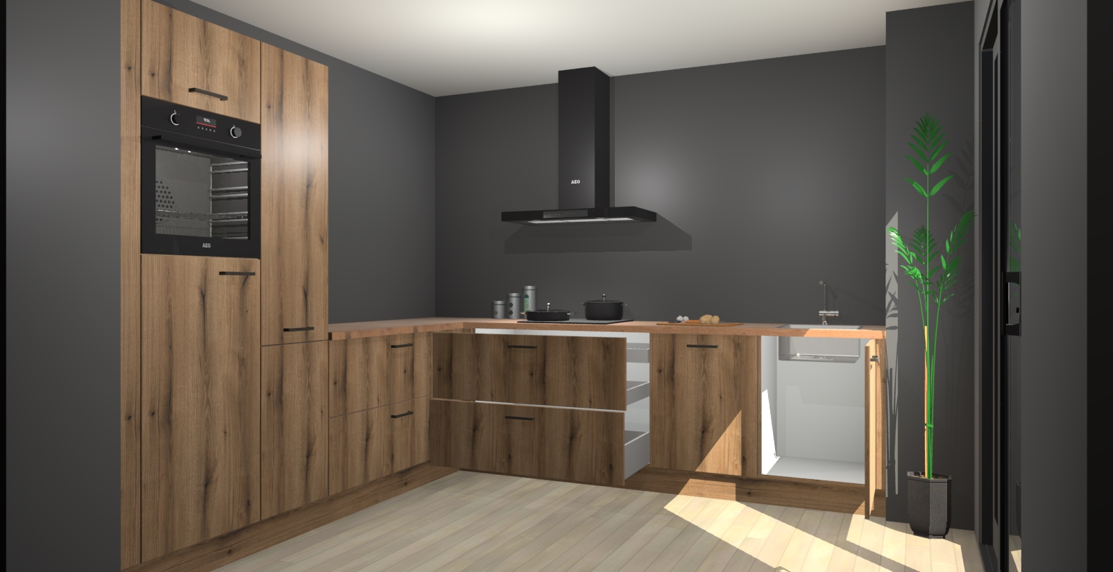 Laat u verrassen door de nieuwste en meest innovatieve keuken van dit moment: De Goud Eiken keuken Antibes. Deze chique keuken straalt een stijlvolle sfeer uit die zeker bewondering zal oogsten bij uw gasten. Als u op zoek bent naar voldoende opbergruimte voor al uw keukengadgets en -gerei, dan is dit de perfecte oplossing. Met ingebouwde apparatuur zoals een oven, inductiekookplaat, afzuigkap, vaatwasser en koelkast! U krijgt niet alleen veel opbergruimte, maar ook een betrouwbaar soft close-deursysteem dat ervoor zorgt dat er nooit meer kastdeuren dichtslaan!