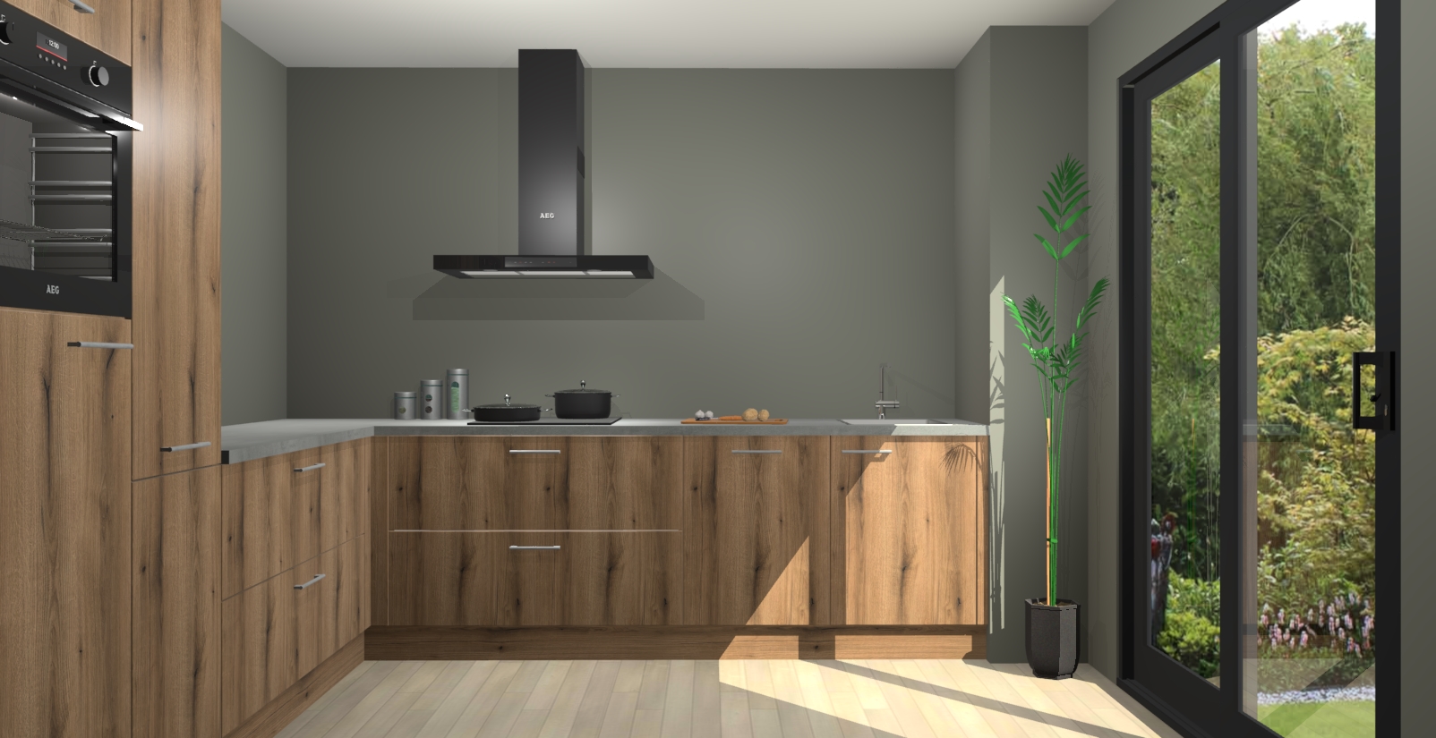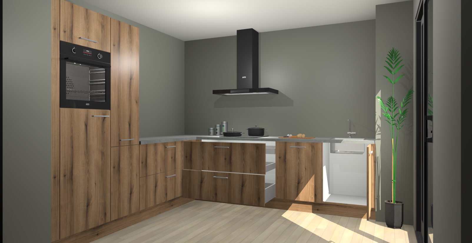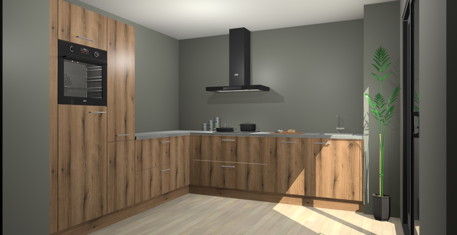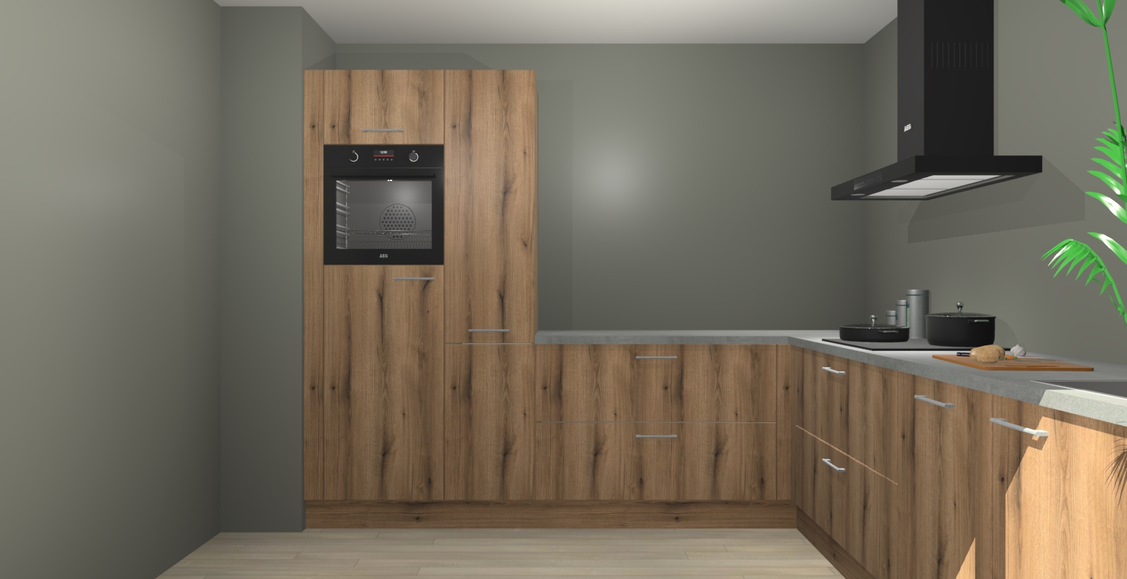 Laat u verrassen door de nieuwste en meest innovatieve keuken van dit moment: De Goud Eiken keuken Antibes. Deze chique keuken straalt een stijlvolle sfeer uit die zeker bewondering zal oogsten bij uw gasten. Als u op zoek bent naar voldoende opbergruimte voor al uw keukengadgets en -gerei, dan is dit de perfecte oplossing. Met ingebouwde apparatuur zoals een oven, inductiekookplaat, afzuigkap, vaatwasser en koelkast! U krijgt niet alleen veel opbergruimte, maar ook een betrouwbaar soft close-deursysteem dat ervoor zorgt dat er nooit meer kastdeuren dichtslaan!