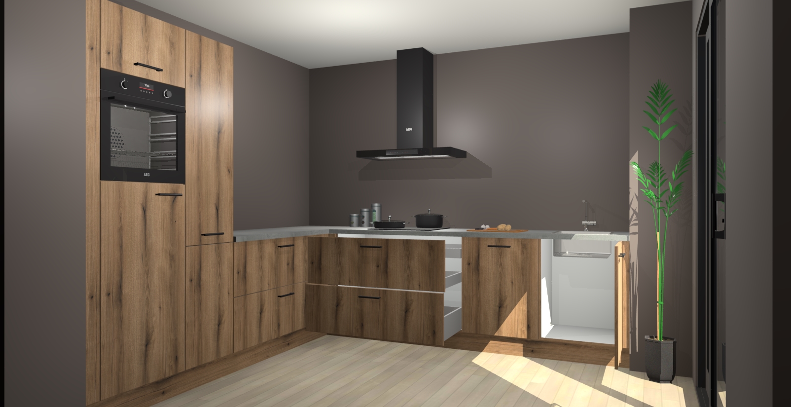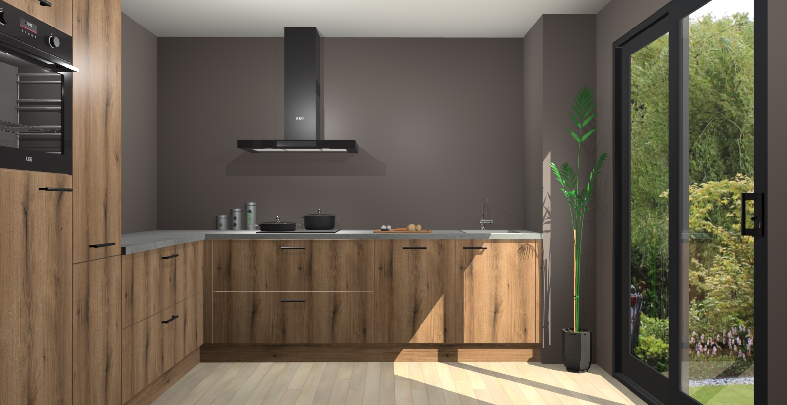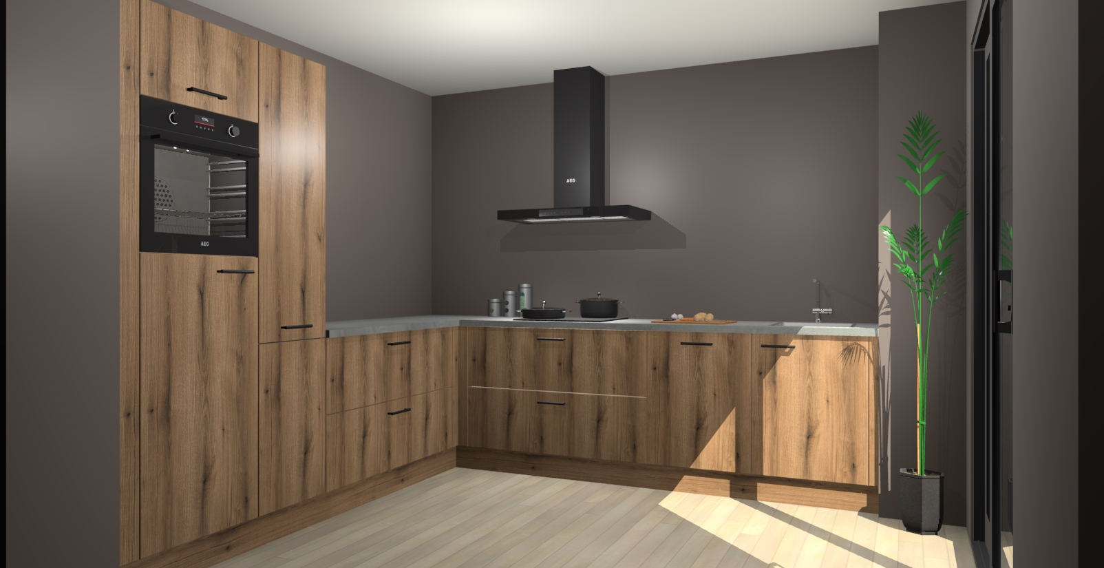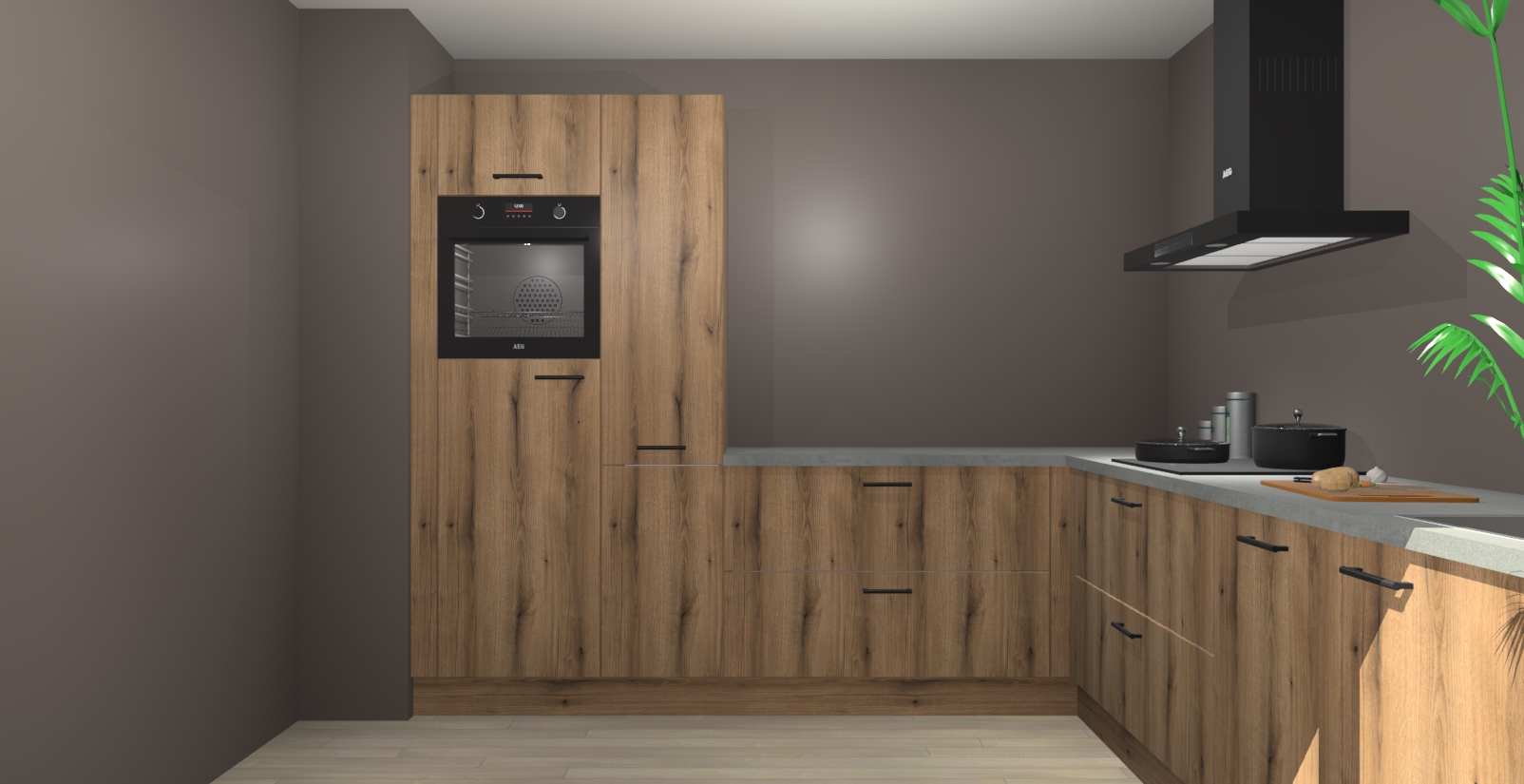 Laat u verrassen door de nieuwste en meest innovatieve keuken van dit moment: De Goud Eiken keuken Antibes. Deze chique keuken straalt een stijlvolle sfeer uit die zeker bewondering zal oogsten bij uw gasten. Als u op zoek bent naar voldoende opbergruimte voor al uw keukengadgets en -gerei, dan is dit de perfecte oplossing. Met ingebouwde apparatuur zoals een oven, inductiekookplaat, afzuigkap, vaatwasser en koelkast! U krijgt niet alleen veel opbergruimte, maar ook een betrouwbaar soft close-deursysteem dat ervoor zorgt dat er nooit meer kastdeuren dichtslaan!