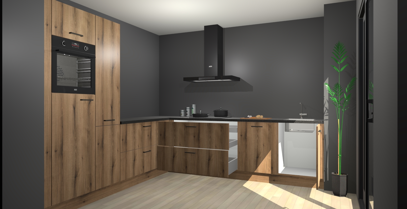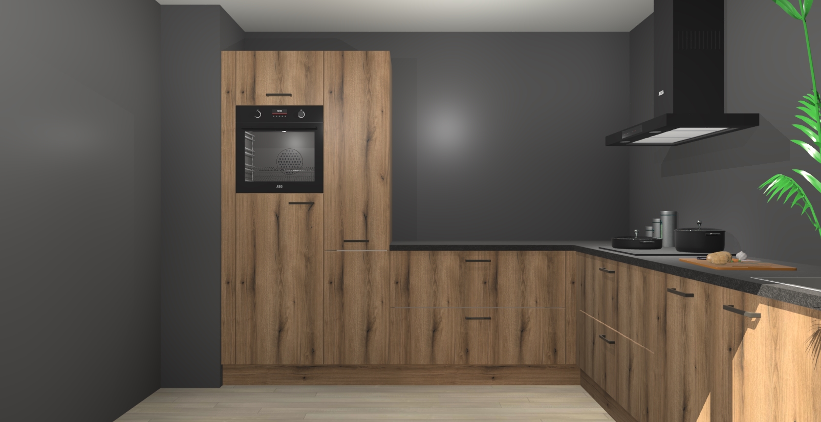 Laat u verrassen door de nieuwste en meest innovatieve keuken van dit moment: De Goud Eiken keuken Antibes. Deze chique keuken straalt een stijlvolle sfeer uit die zeker bewondering zal oogsten bij uw gasten. Als u op zoek bent naar voldoende opbergruimte voor al uw keukengadgets en -gerei, dan is dit de perfecte oplossing. Met ingebouwde apparatuur zoals een oven, inductiekookplaat, afzuigkap, vaatwasser en koelkast! U krijgt niet alleen veel opbergruimte, maar ook een betrouwbaar soft close-deursysteem dat ervoor zorgt dat er nooit meer kastdeuren dichtslaan!
