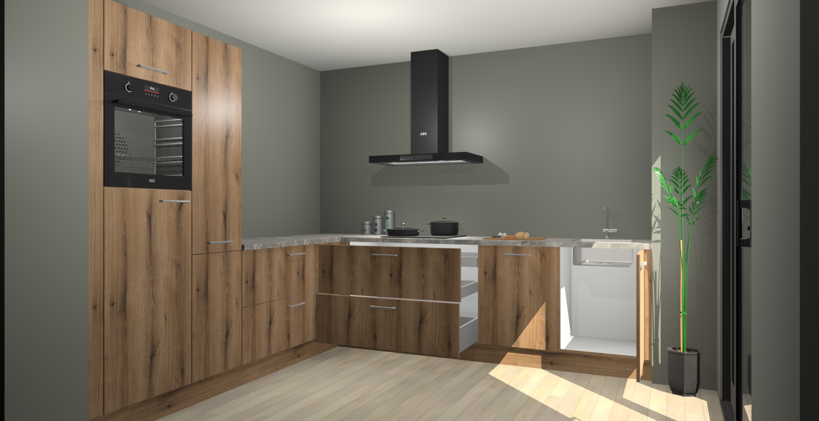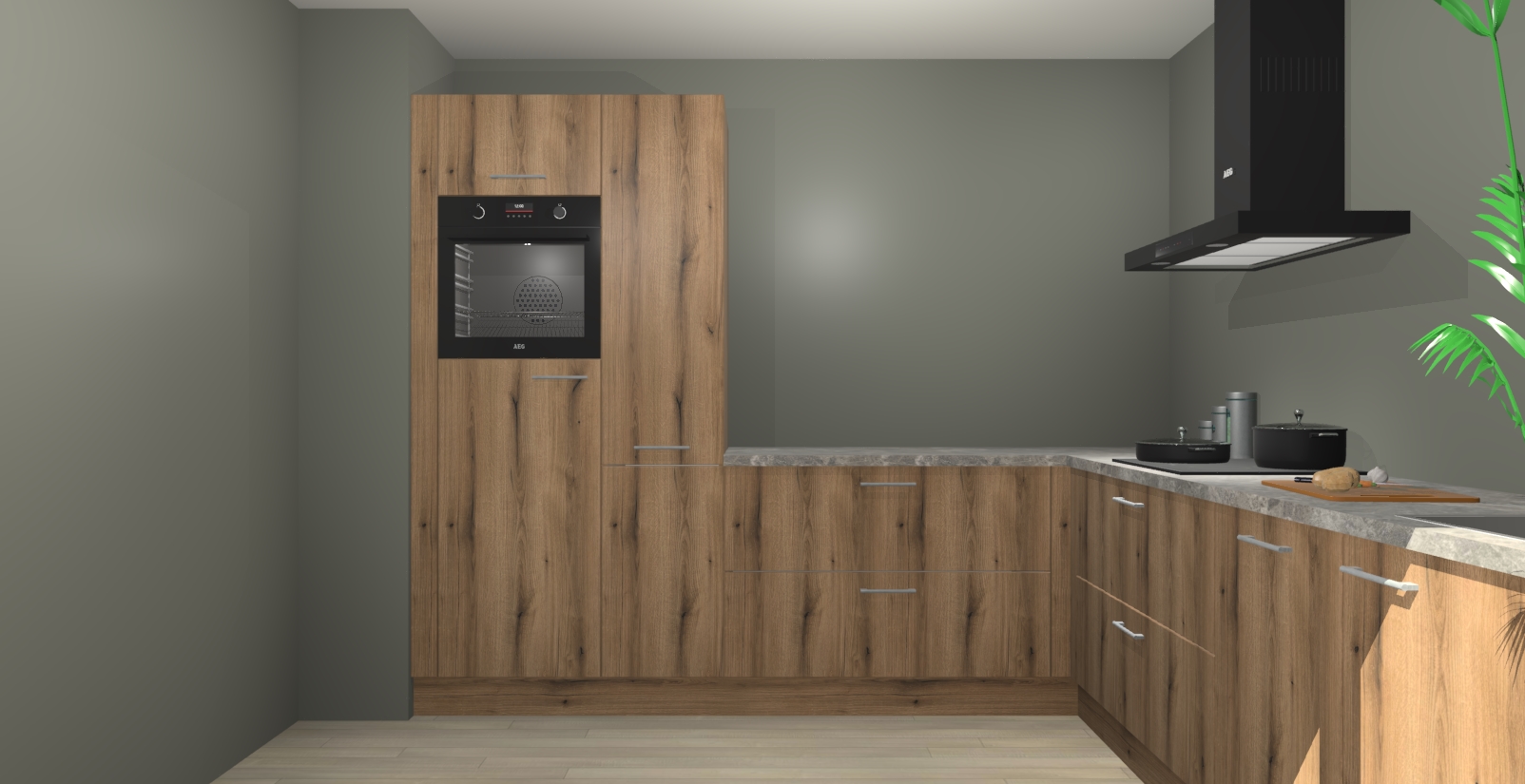 Laat u verrassen door de nieuwste en meest innovatieve keuken van dit moment: De Goud Eiken keuken Antibes. Deze chique keuken straalt een stijlvolle sfeer uit die zeker bewondering zal oogsten bij uw gasten. Als u op zoek bent naar voldoende opbergruimte voor al uw keukengadgets en -gerei, dan is dit de perfecte oplossing. Met ingebouwde apparatuur zoals een oven, inductiekookplaat, afzuigkap, vaatwasser en koelkast! U krijgt niet alleen veel opbergruimte, maar ook een betrouwbaar soft close-deursysteem dat ervoor zorgt dat er nooit meer kastdeuren dichtslaan!