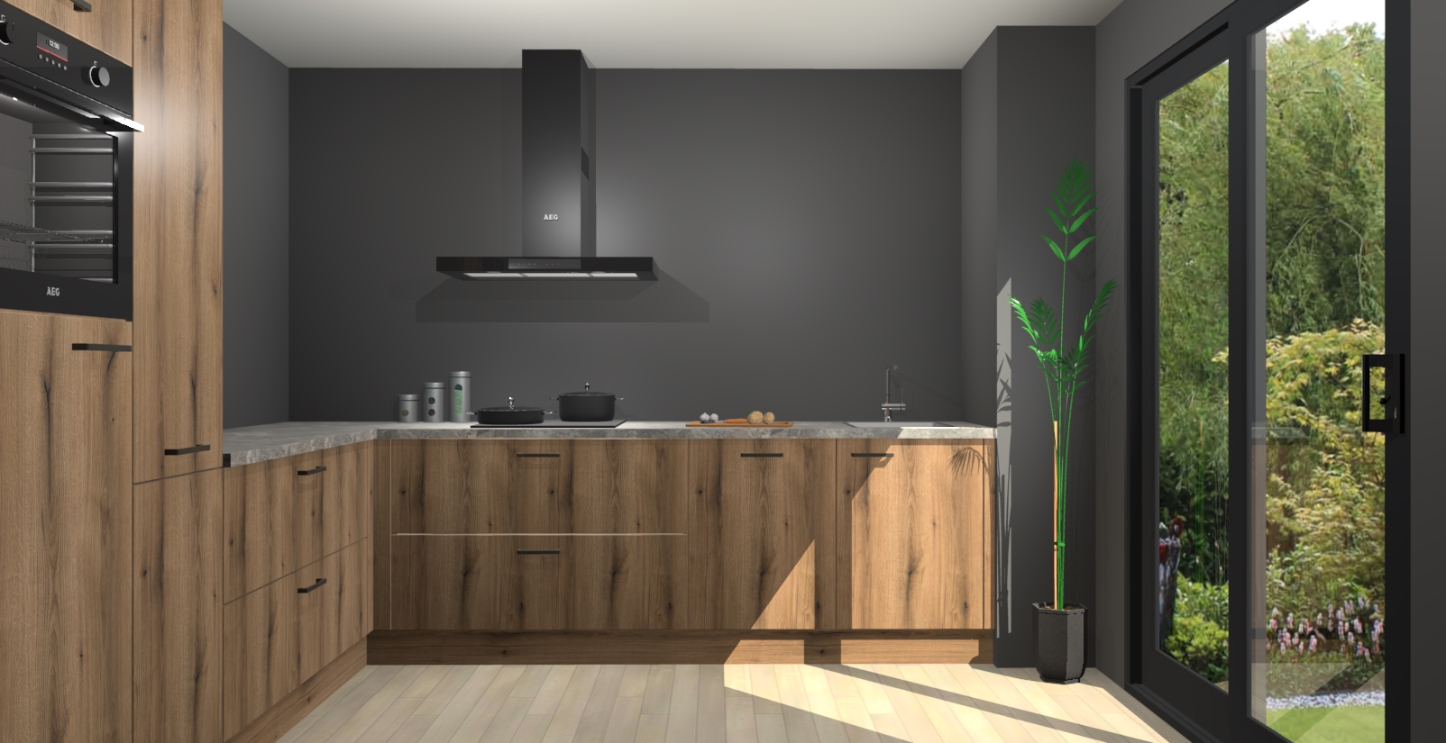 Laat u verrassen door de nieuwste en meest innovatieve keuken van dit moment: De Goud Eiken keuken Antibes. Deze chique keuken straalt een stijlvolle sfeer uit die zeker bewondering zal oogsten bij uw gasten. Als u op zoek bent naar voldoende opbergruimte voor al uw keukengadgets en -gerei, dan is dit de perfecte oplossing. Met ingebouwde apparatuur zoals een oven, inductiekookplaat, afzuigkap, vaatwasser en koelkast! U krijgt niet alleen veel opbergruimte, maar ook een betrouwbaar soft close-deursysteem dat ervoor zorgt dat er nooit meer kastdeuren dichtslaan!