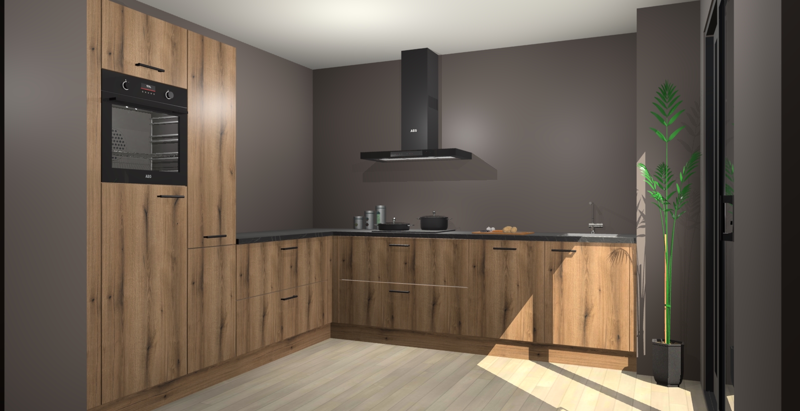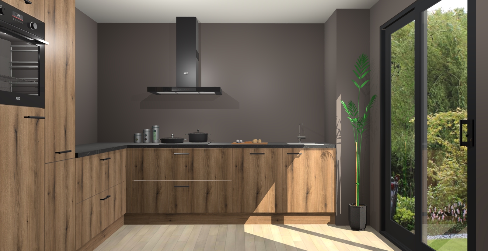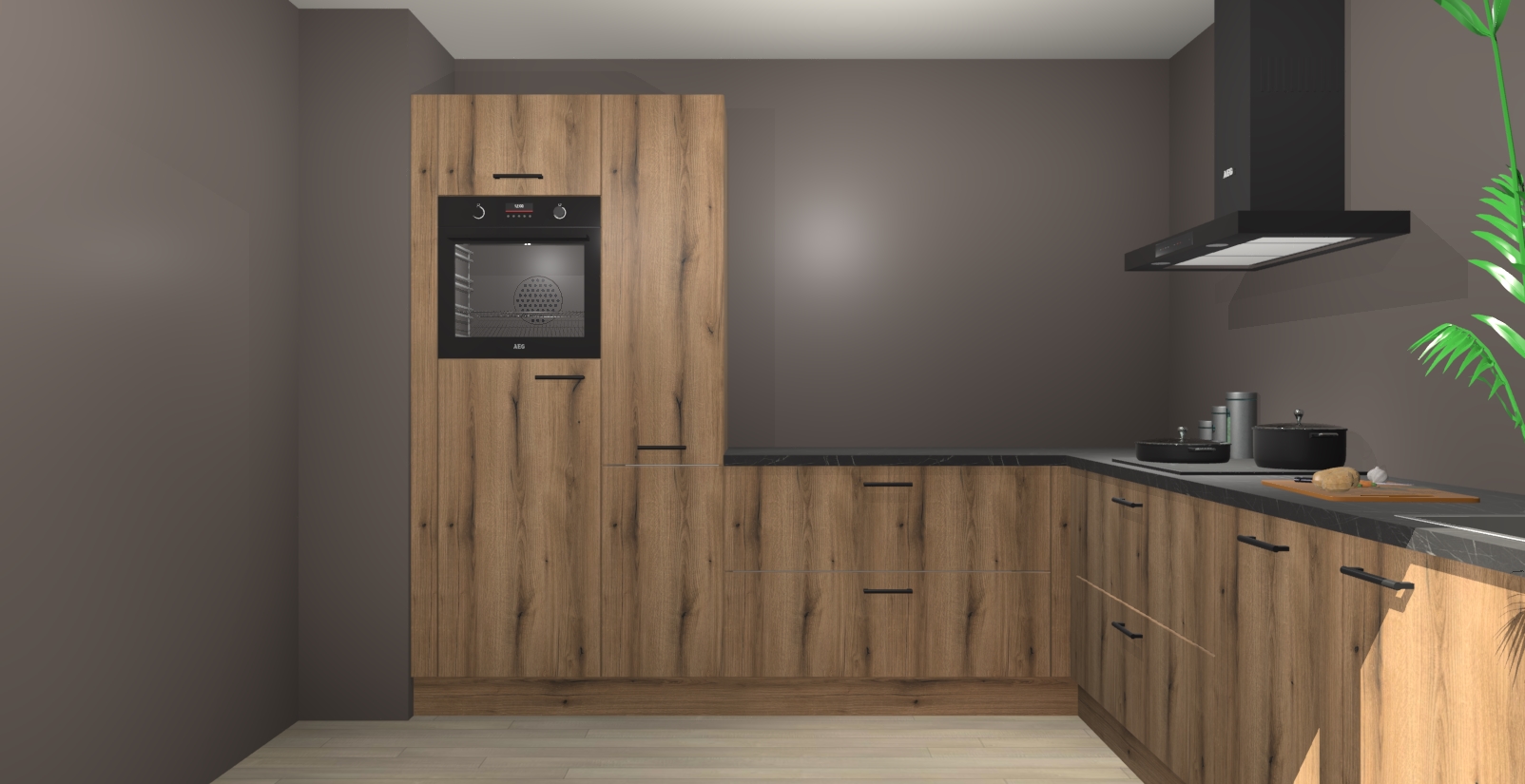 Laat u verrassen door de nieuwste en meest innovatieve keuken van dit moment: De Goud Eiken keuken Antibes. Deze chique keuken straalt een stijlvolle sfeer uit die zeker bewondering zal oogsten bij uw gasten. Als u op zoek bent naar voldoende opbergruimte voor al uw keukengadgets en -gerei, dan is dit de perfecte oplossing. Met ingebouwde apparatuur zoals een oven, inductiekookplaat, afzuigkap, vaatwasser en koelkast! U krijgt niet alleen veel opbergruimte, maar ook een betrouwbaar soft close-deursysteem dat ervoor zorgt dat er nooit meer kastdeuren dichtslaan!