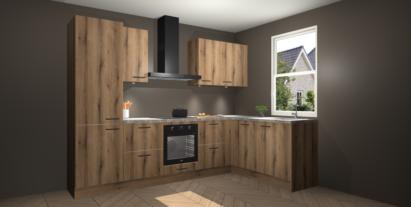 Maak kennis met de trendsettende en luxe Goud Eiken keuken Bazel! Deze uitzonderlijke keuken van Duitse kwaliteit is stijlvol, modern en perfect om elk huis mee op te fleuren. De binnenkant van de kasten worden meegenomen in een bijpassende kleur om een samenhangende eigentijdse esthetiek te voltooien. U zult dol zijn op hoe uw pas gerenoveerde keuken eruitziet met de Goud Eiken editie!