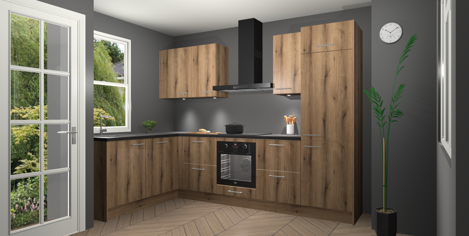 U hoeft zich ook geen zorgen te maken over een gebrek aan opbergruimte, want deze keuken heeft voldoende opbergmogelijkheden zowel boven als onder het aanrecht. Om het leven nog makkelijker te maken, wordt deze moderne hoekkeuken geleverd met 5 ingebouwde apparaten, waaronder een oven, inductiekookplaat, afzuigkap, vaatwasser en koelkast, zodat u in een mum van tijd klaar bent voor actie!