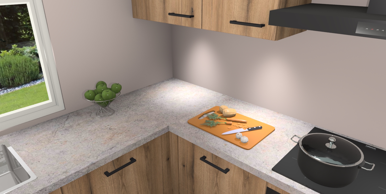 - Bij een hoekwerkblad zijn de hoeken in gevreesd en op maat gemaakt