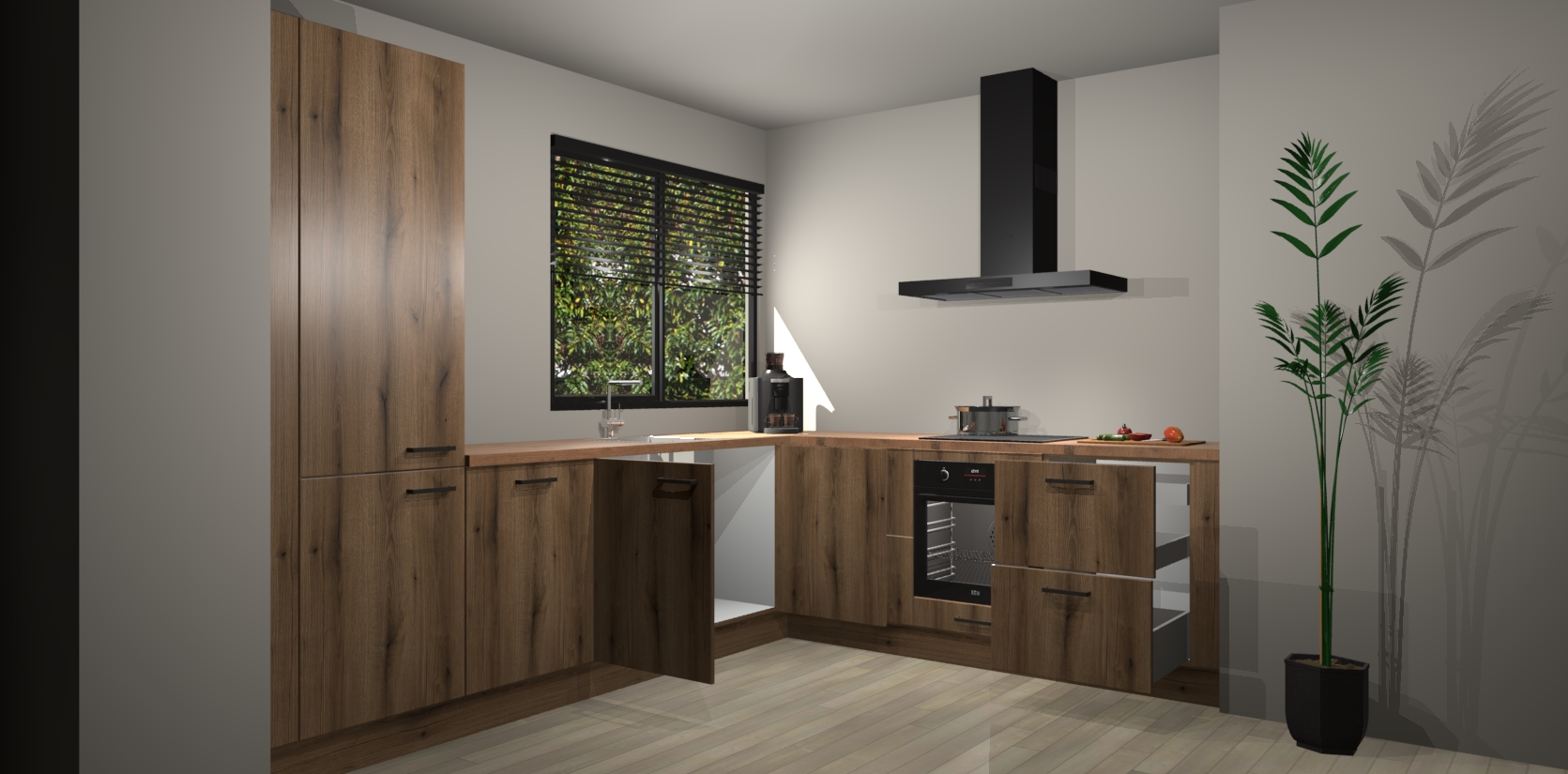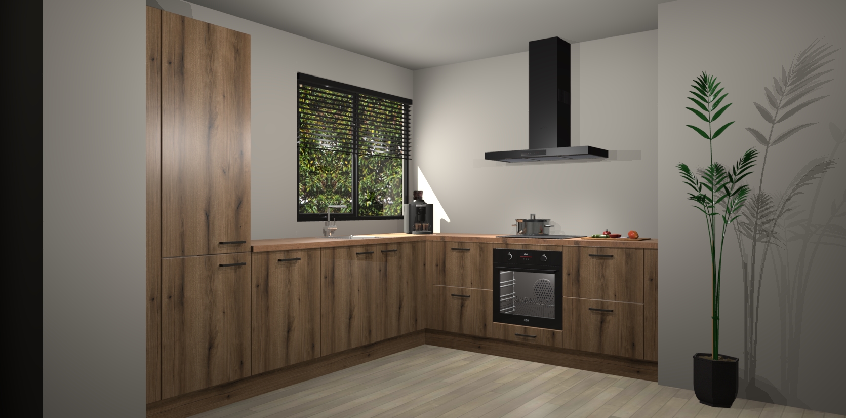 Met een modern, tijdloos design en ruime opslagruimte, zult u zich in no-time thuis voelen in uw nieuwe keuken. Uw leven wordt eenvoudiger met de soft-close deuren die voor het ultieme stille comfort zorgen - geen geluid dat u stoort terwijl u kookt. Ook is de keuken voorzien van 5 ingebouwde apparaten: een oven, inductie kookplaat, afzuigkap, vaatwasser en koelkast. Deze kunnen gemakkelijk na bestelling worden bijgewerkt naar AEG - waardoor uw luxe ervaring compleet is.