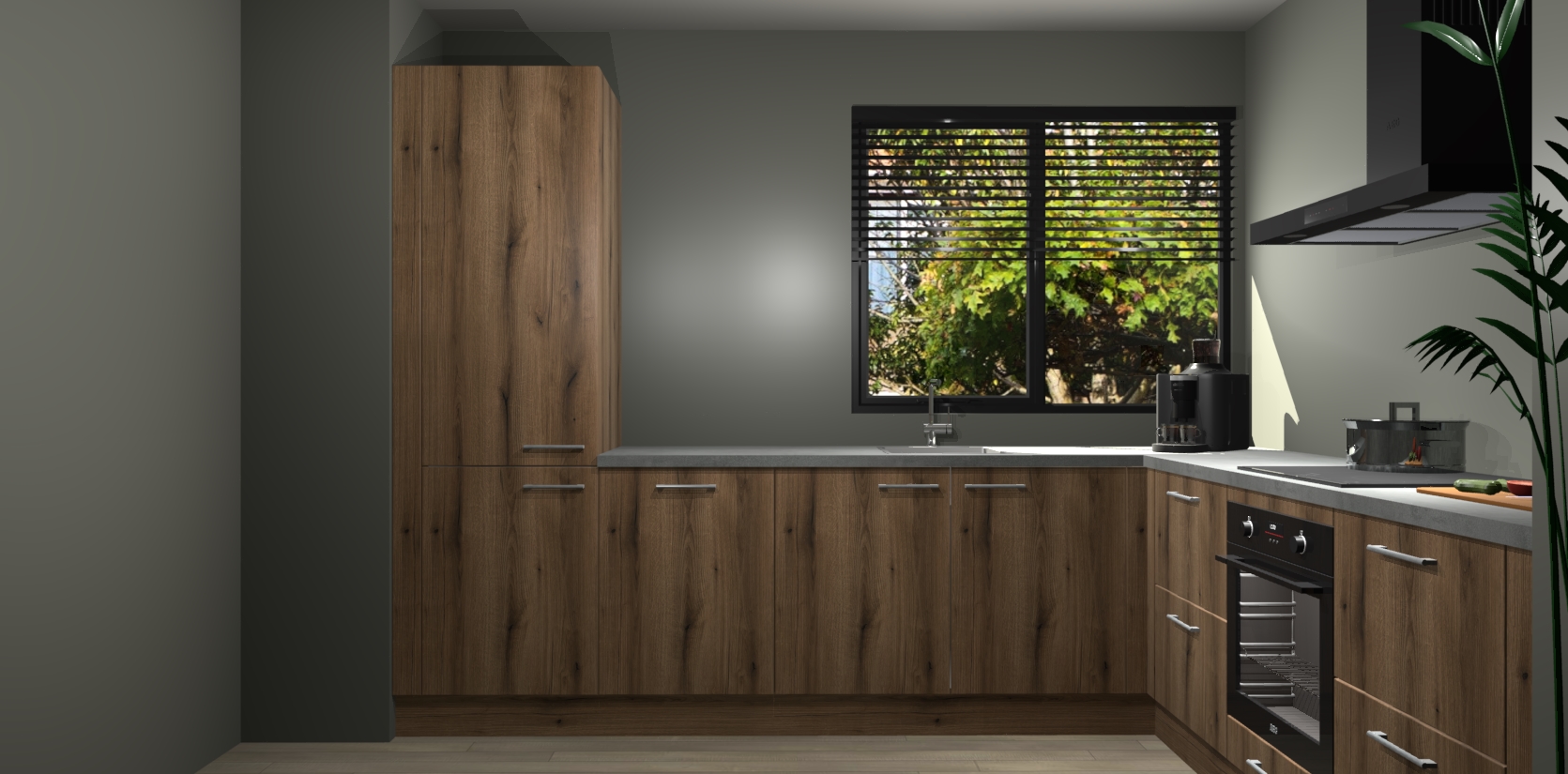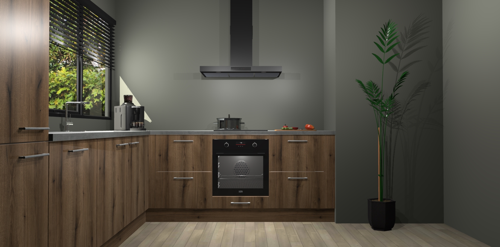 Met een modern, tijdloos design en ruime opslagruimte, zult u zich in no-time thuis voelen in uw nieuwe keuken. Uw leven wordt eenvoudiger met de soft-close deuren die voor het ultieme stille comfort zorgen - geen geluid dat u stoort terwijl u kookt. Ook is de keuken voorzien van 5 ingebouwde apparaten: een oven, inductie kookplaat, afzuigkap, vaatwasser en koelkast. Deze kunnen gemakkelijk na bestelling worden bijgewerkt naar AEG - waardoor uw luxe ervaring compleet is.
