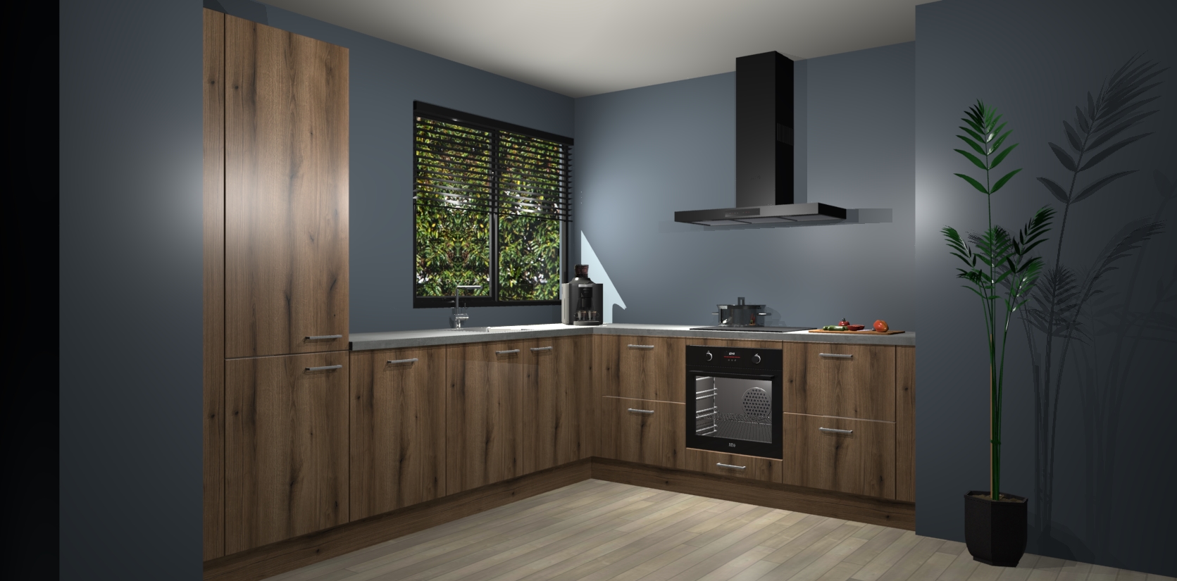 Met een modern, tijdloos design en ruime opslagruimte, zult u zich in no-time thuis voelen in uw nieuwe keuken. Uw leven wordt eenvoudiger met de soft-close deuren die voor het ultieme stille comfort zorgen - geen geluid dat u stoort terwijl u kookt. Ook is de keuken voorzien van 5 ingebouwde apparaten: een oven, inductie kookplaat, afzuigkap, vaatwasser en koelkast. Deze kunnen gemakkelijk na bestelling worden bijgewerkt naar AEG - waardoor uw luxe ervaring compleet is.