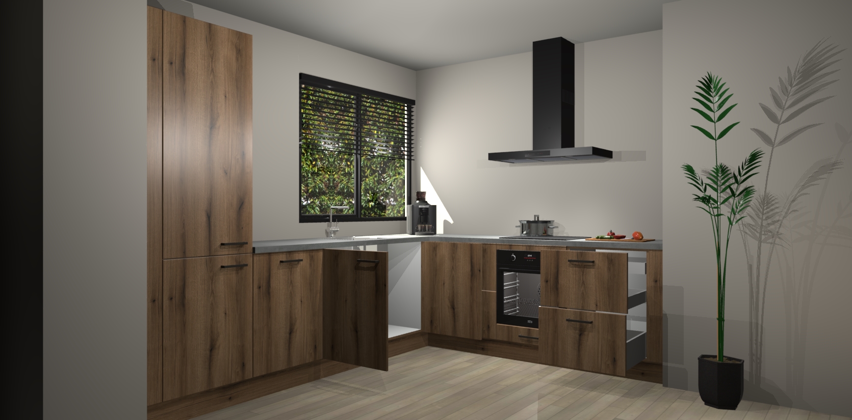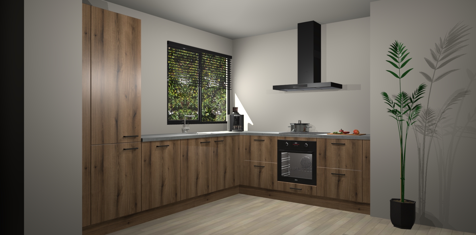 Met een modern, tijdloos design en ruime opslagruimte, zult u zich in no-time thuis voelen in uw nieuwe keuken. Uw leven wordt eenvoudiger met de soft-close deuren die voor het ultieme stille comfort zorgen - geen geluid dat u stoort terwijl u kookt. Ook is de keuken voorzien van 5 ingebouwde apparaten: een oven, inductie kookplaat, afzuigkap, vaatwasser en koelkast. Deze kunnen gemakkelijk na bestelling worden bijgewerkt naar AEG - waardoor uw luxe ervaring compleet is.