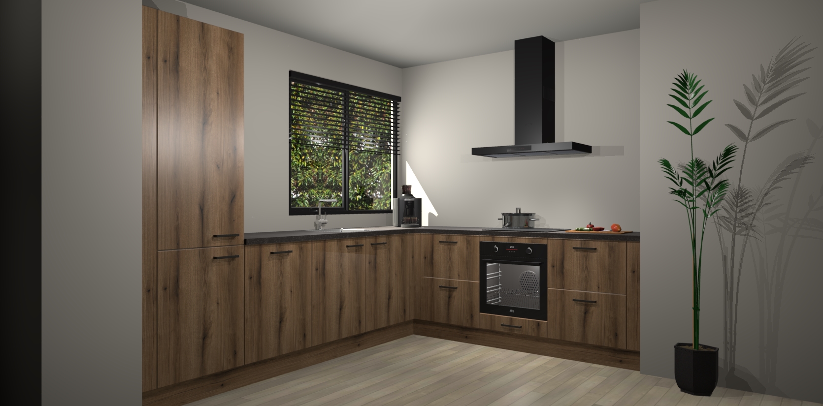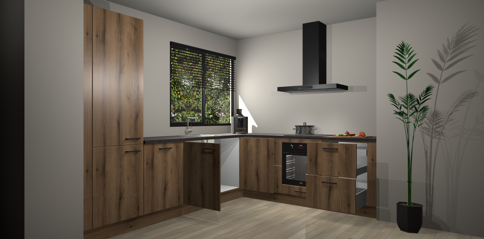 Met een modern, tijdloos design en ruime opslagruimte, zult u zich in no-time thuis voelen in uw nieuwe keuken. Uw leven wordt eenvoudiger met de soft-close deuren die voor het ultieme stille comfort zorgen - geen geluid dat u stoort terwijl u kookt. Ook is de keuken voorzien van 5 ingebouwde apparaten: een oven, inductie kookplaat, afzuigkap, vaatwasser en koelkast. Deze kunnen gemakkelijk na bestelling worden bijgewerkt naar AEG - waardoor uw luxe ervaring compleet is.