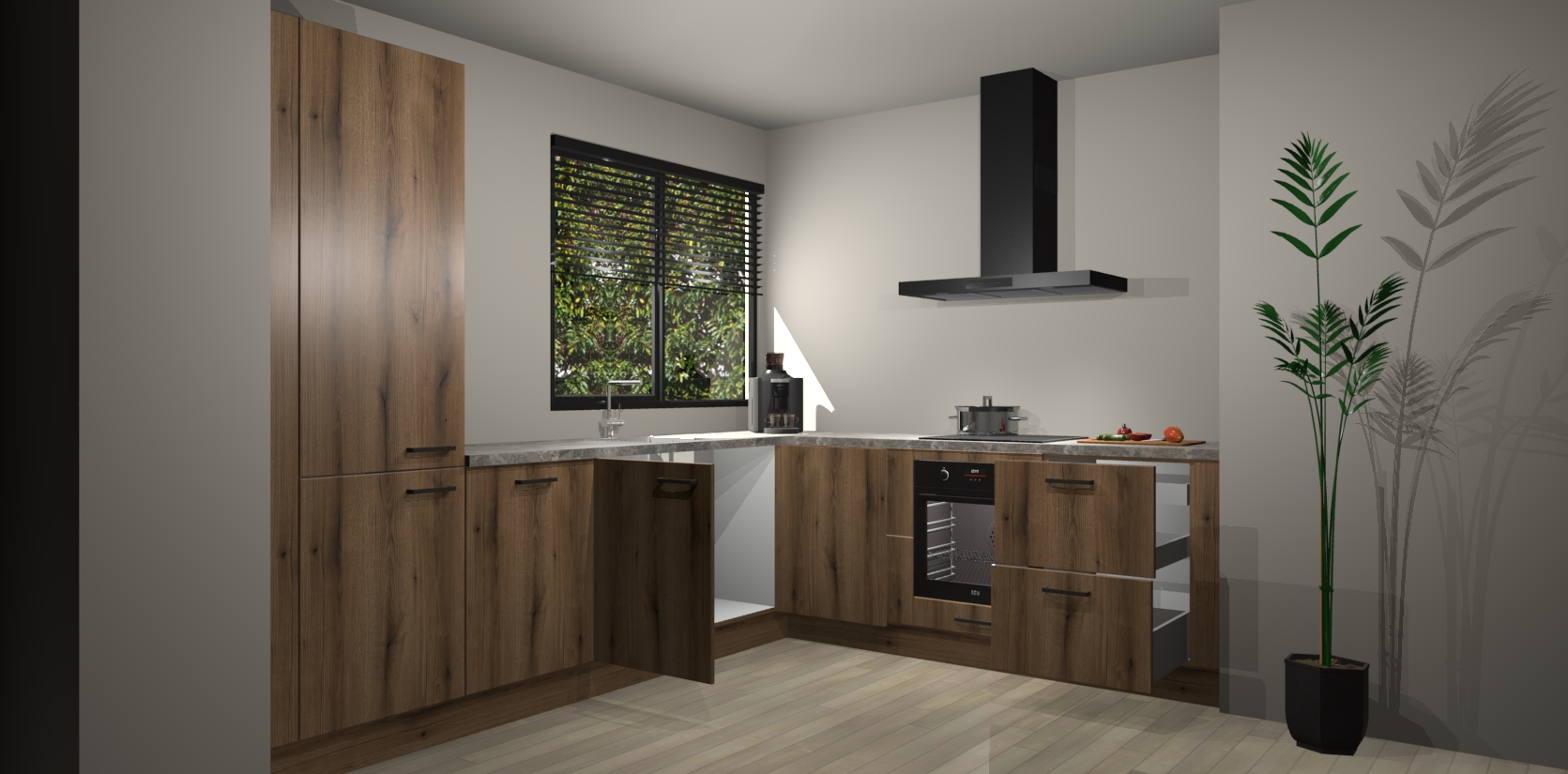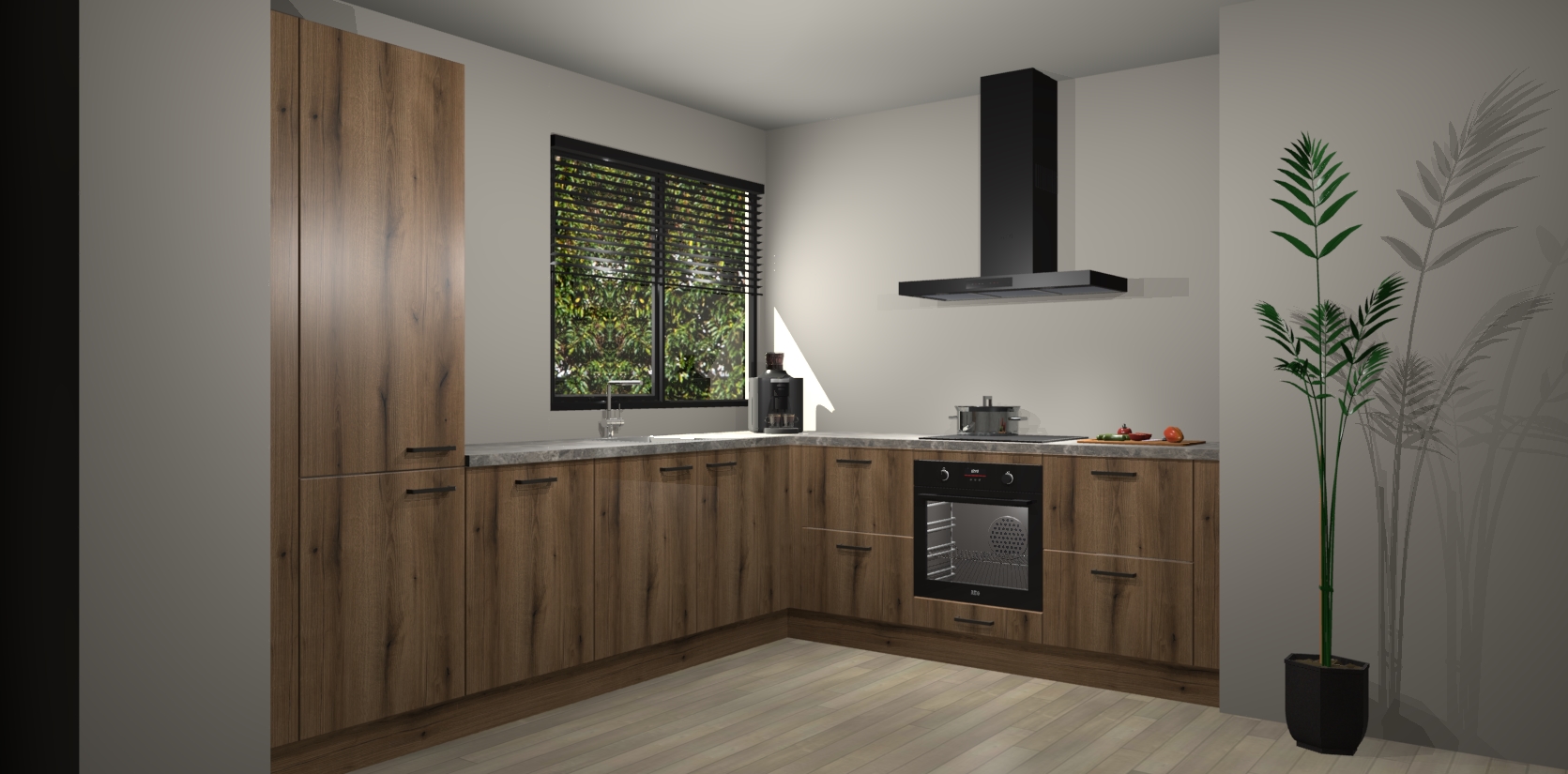 Met een modern, tijdloos design en ruime opslagruimte, zult u zich in no-time thuis voelen in uw nieuwe keuken. Uw leven wordt eenvoudiger met de soft-close deuren die voor het ultieme stille comfort zorgen - geen geluid dat u stoort terwijl u kookt. Ook is de keuken voorzien van 5 ingebouwde apparaten: een oven, inductie kookplaat, afzuigkap, vaatwasser en koelkast. Deze kunnen gemakkelijk na bestelling worden bijgewerkt naar AEG - waardoor uw luxe ervaring compleet is.