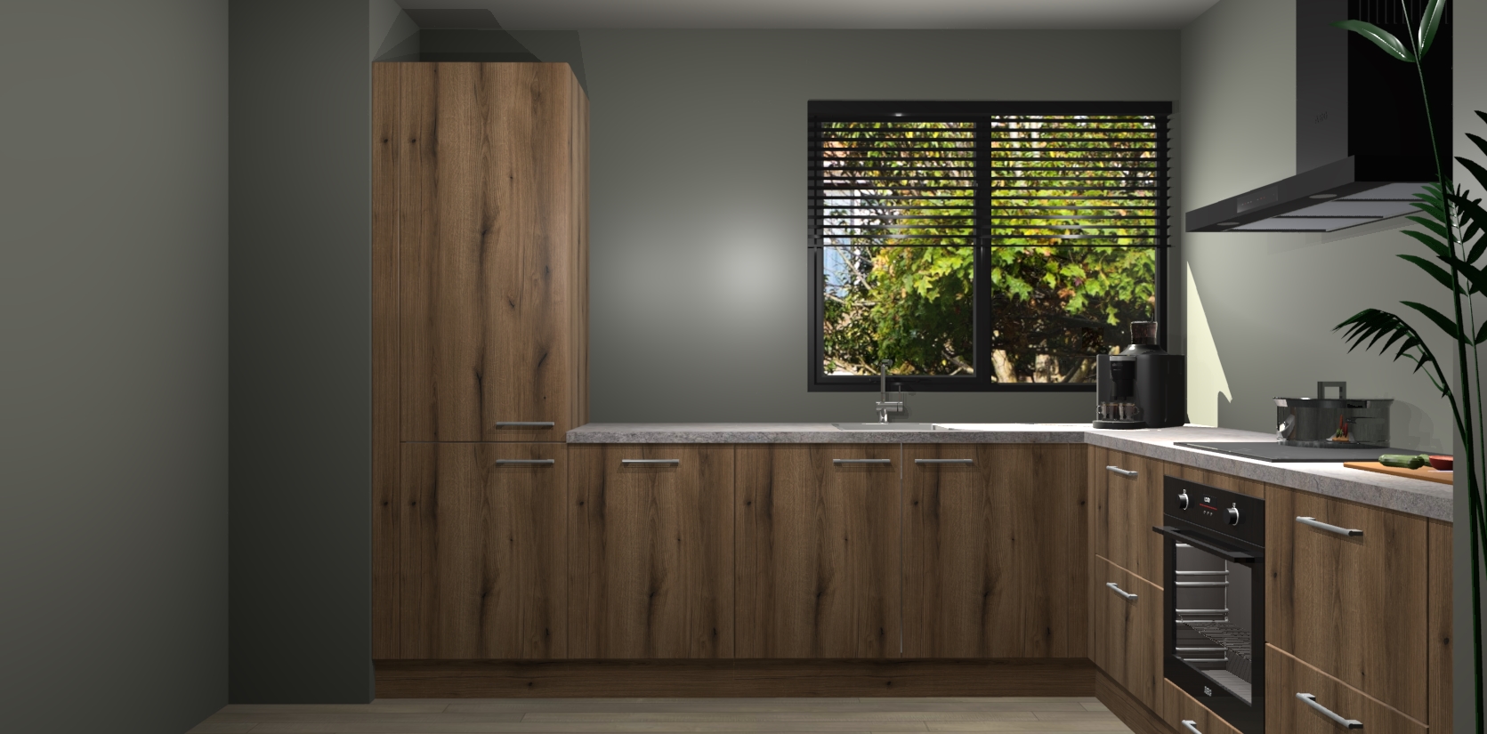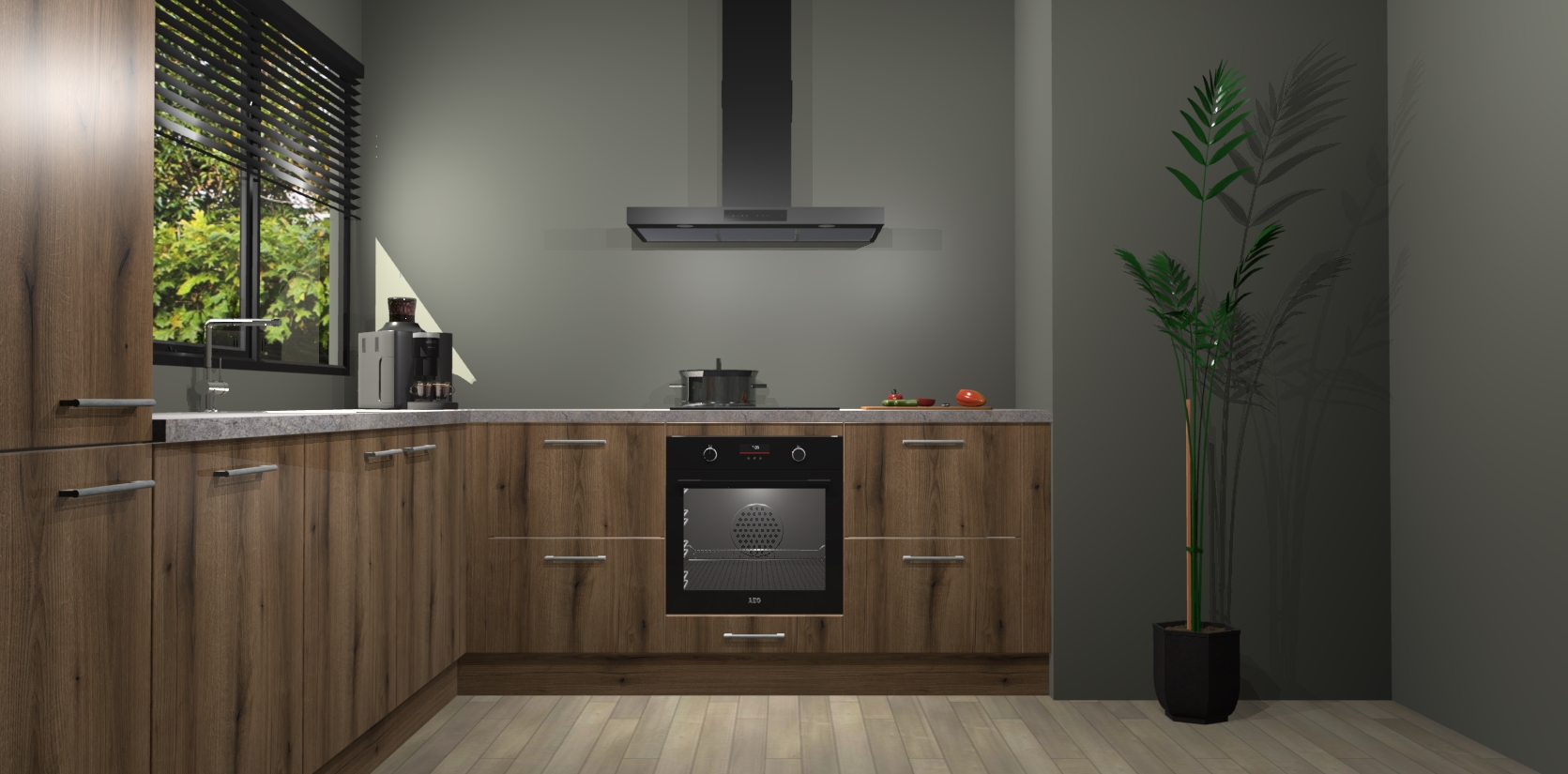 Met een modern, tijdloos design en ruime opslagruimte, zult u zich in no-time thuis voelen in uw nieuwe keuken. Uw leven wordt eenvoudiger met de soft-close deuren die voor het ultieme stille comfort zorgen - geen geluid dat u stoort terwijl u kookt. Ook is de keuken voorzien van 5 ingebouwde apparaten: een oven, inductie kookplaat, afzuigkap, vaatwasser en koelkast. Deze kunnen gemakkelijk na bestelling worden bijgewerkt naar AEG - waardoor uw luxe ervaring compleet is.