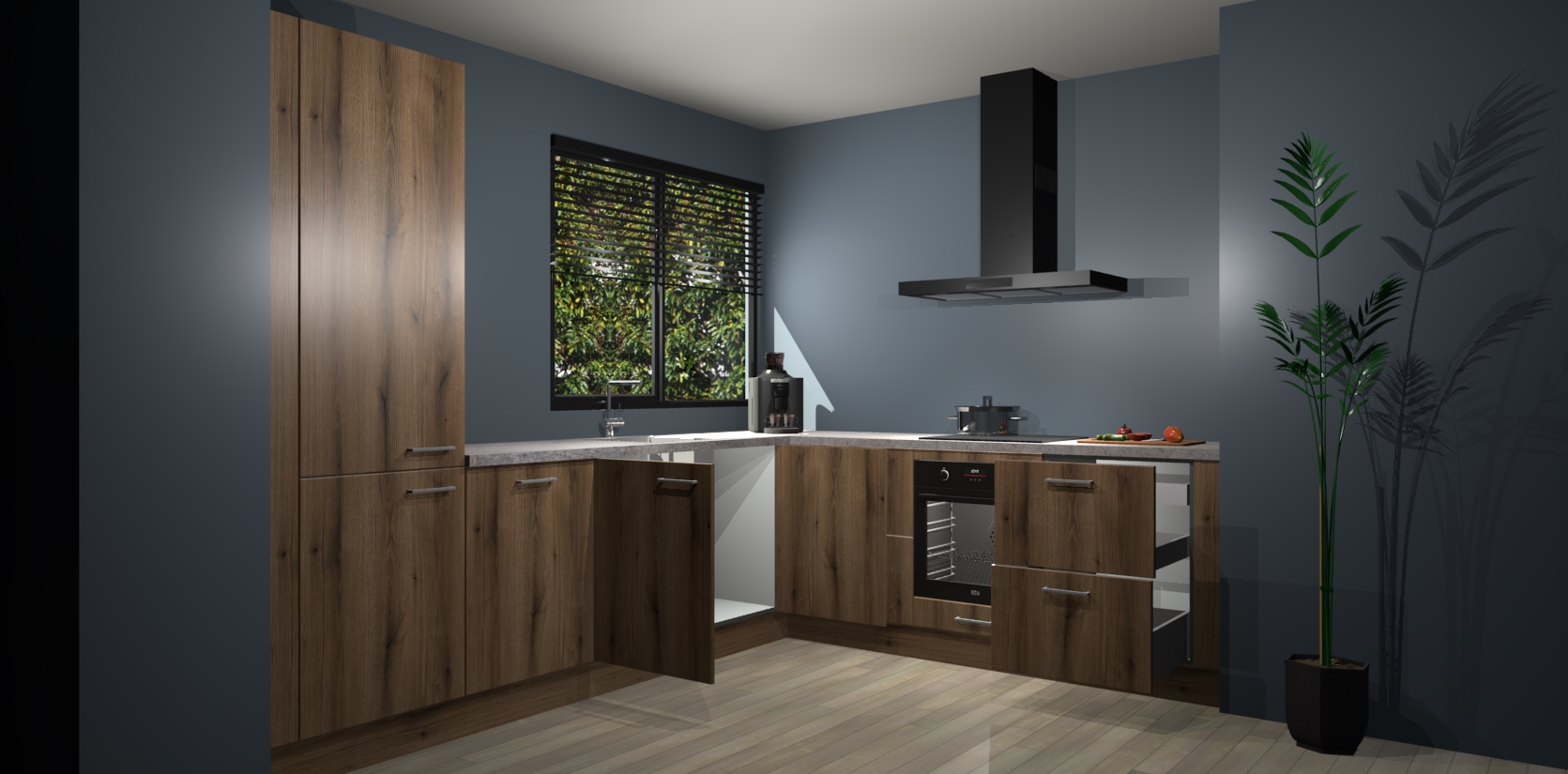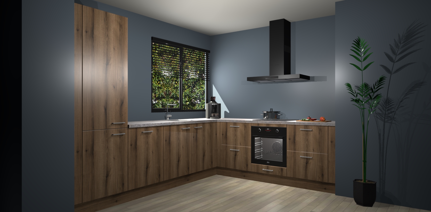 Met een modern, tijdloos design en ruime opslagruimte, zult u zich in no-time thuis voelen in uw nieuwe keuken. Uw leven wordt eenvoudiger met de soft-close deuren die voor het ultieme stille comfort zorgen - geen geluid dat u stoort terwijl u kookt. Ook is de keuken voorzien van 5 ingebouwde apparaten: een oven, inductie kookplaat, afzuigkap, vaatwasser en koelkast. Deze kunnen gemakkelijk na bestelling worden bijgewerkt naar AEG - waardoor uw luxe ervaring compleet is.