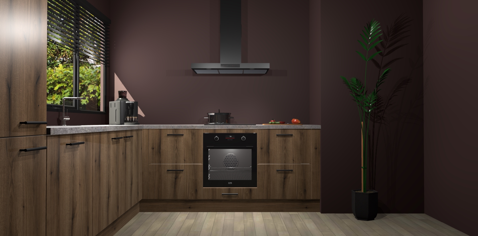 Met een modern, tijdloos design en ruime opslagruimte, zult u zich in no-time thuis voelen in uw nieuwe keuken. Uw leven wordt eenvoudiger met de soft-close deuren die voor het ultieme stille comfort zorgen - geen geluid dat u stoort terwijl u kookt. Ook is de keuken voorzien van 5 ingebouwde apparaten: een oven, inductie kookplaat, afzuigkap, vaatwasser en koelkast. Deze kunnen gemakkelijk na bestelling worden bijgewerkt naar AEG - waardoor uw luxe ervaring compleet is.