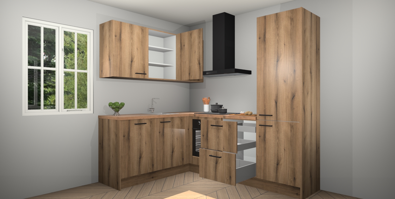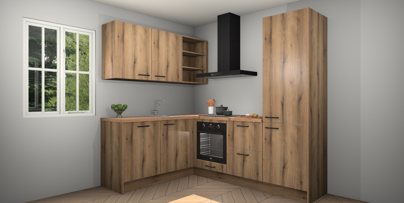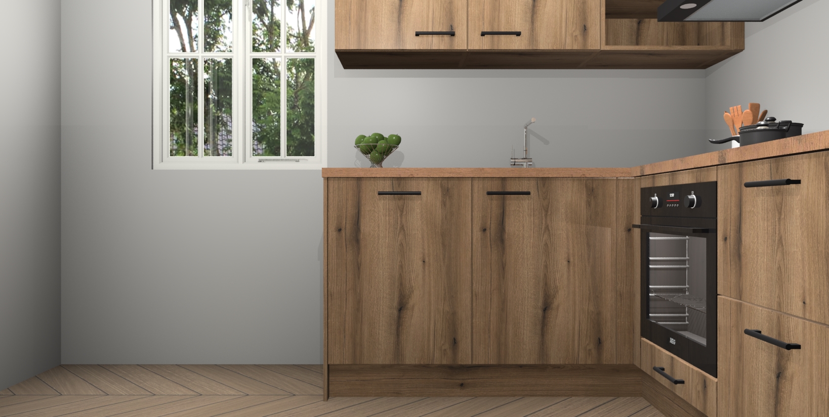 Maak kennis met de Goud Eiken keuken Boekarest, een moderne hoekkeuken waar al uw vrienden en familie jaloers op zullen zijn! Het verbluffende mooie ontwerp past in elk interieur en is een ideale keuze voor wie op zoek is naar een klassieke, maar verfijnde look.