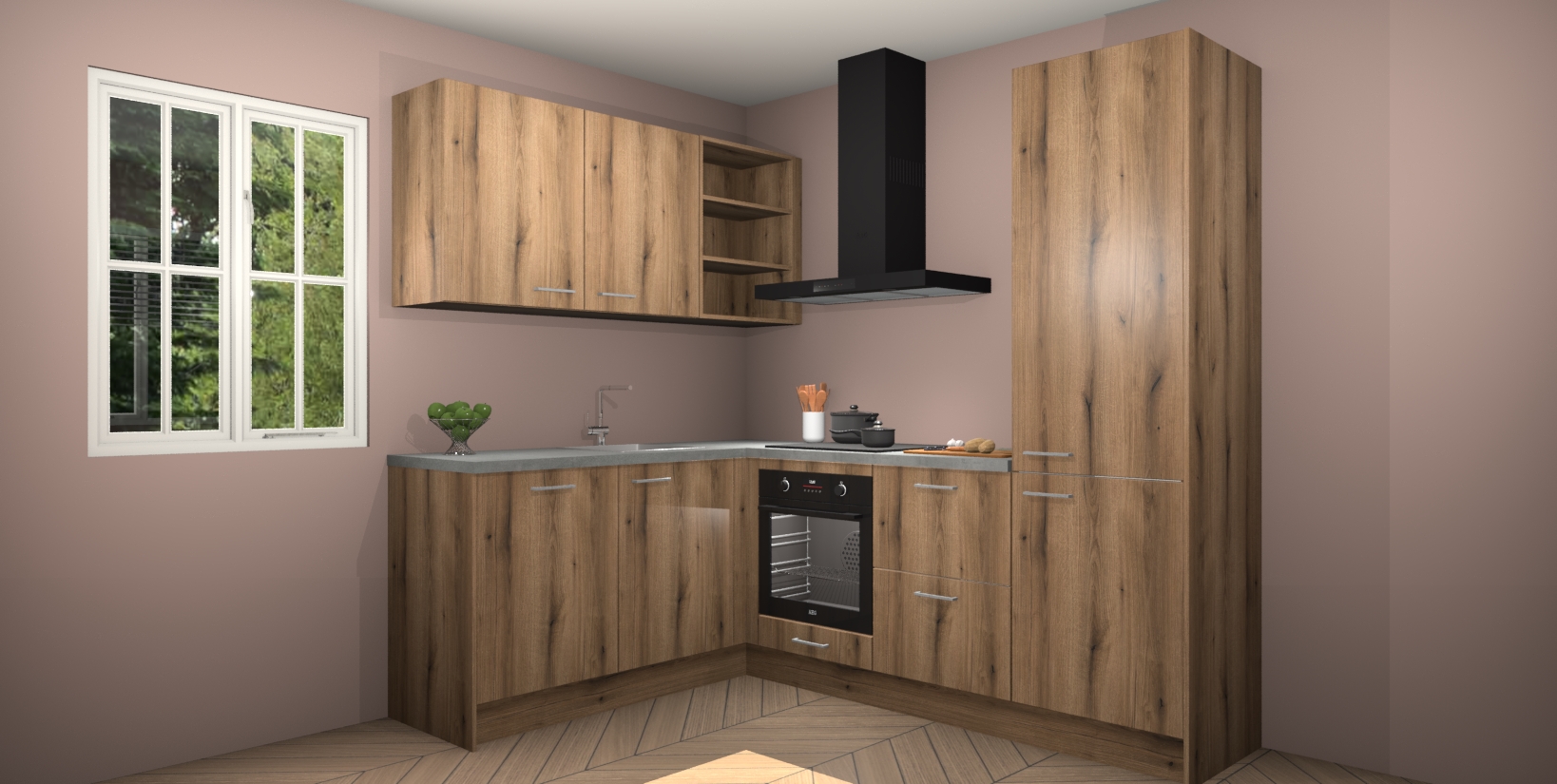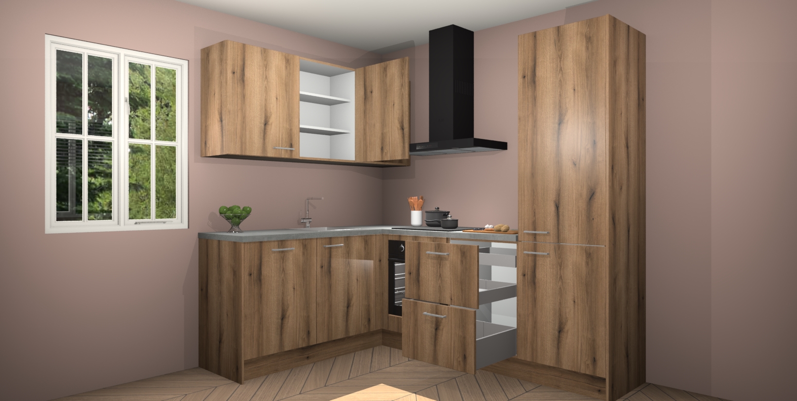 Maak kennis met de Goud Eiken keuken Boekarest, een moderne hoekkeuken waar al uw vrienden en familie jaloers op zullen zijn! Het verbluffende mooie ontwerp past in elk interieur en is een ideale keuze voor wie op zoek is naar een klassieke, maar verfijnde look.