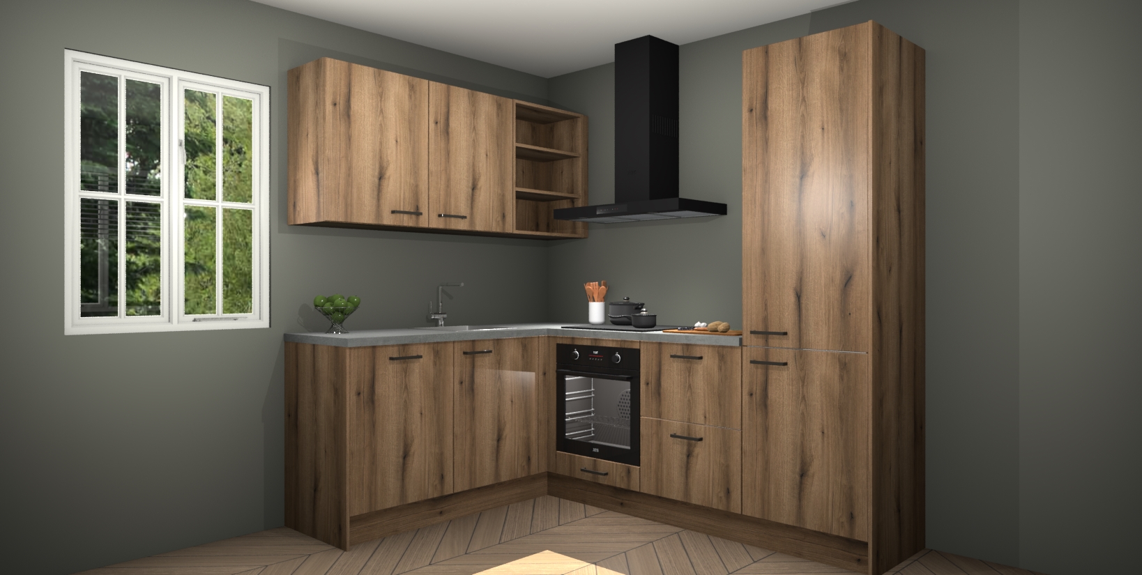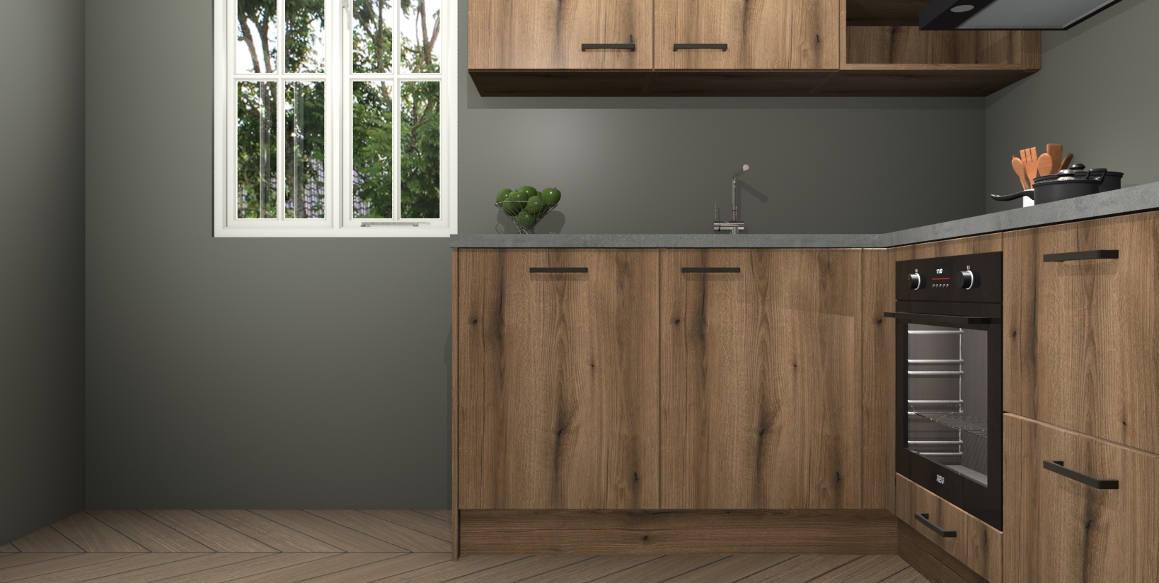 Maak kennis met de Goud Eiken keuken Boekarest, een moderne hoekkeuken waar al uw vrienden en familie jaloers op zullen zijn! Het verbluffende mooie ontwerp past in elk interieur en is een ideale keuze voor wie op zoek is naar een klassieke, maar verfijnde look.