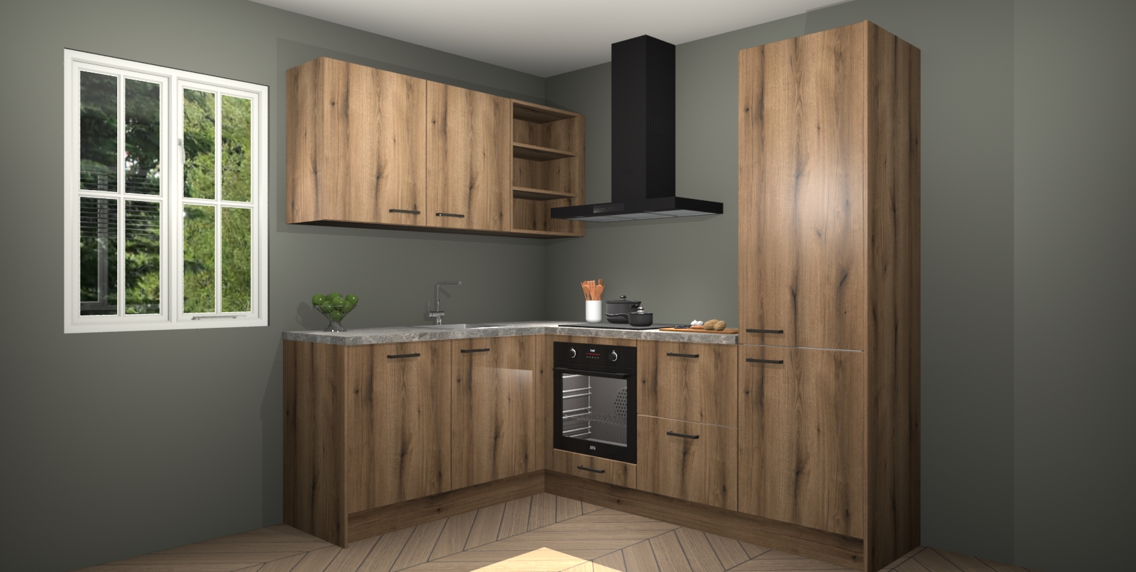 Maak kennis met de Goud Eiken keuken Boekarest, een moderne hoekkeuken waar al uw vrienden en familie jaloers op zullen zijn! Het verbluffende mooie ontwerp past in elk interieur en is een ideale keuze voor wie op zoek is naar een klassieke, maar verfijnde look.