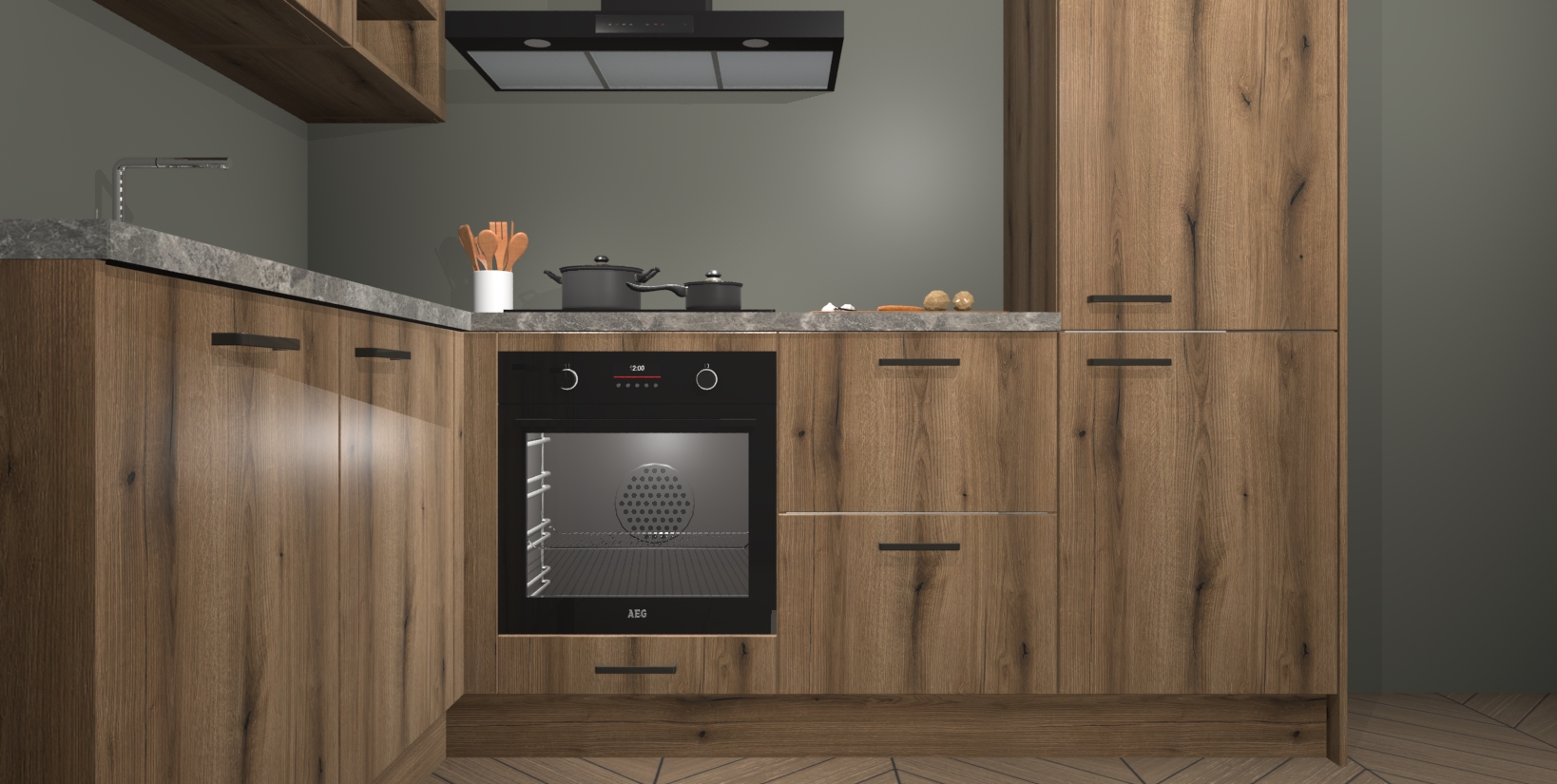 Voor nog meer gemak heeft deze keuken vijf ingebouwde apparaten - oven, inductiekookplaat, afzuigkap, vaatwasser en koelkast. Bovendien hebben alle kasten softclose deuren voor extra comfort bij het sluiten. Dit alles voor een verrassend lage vaste prijs - u vindt nergens anders een betere deal!
