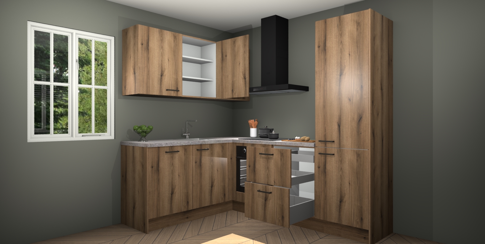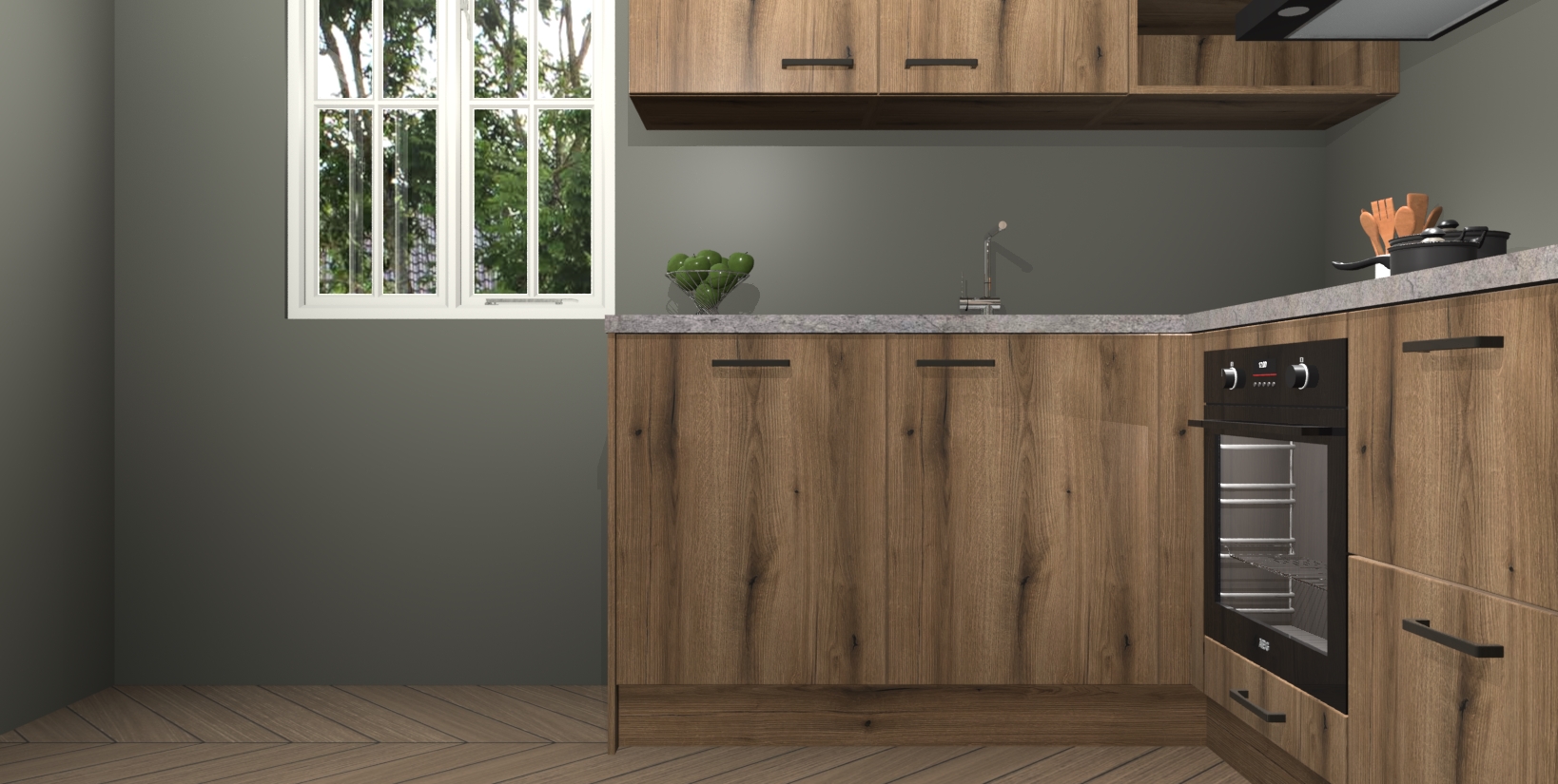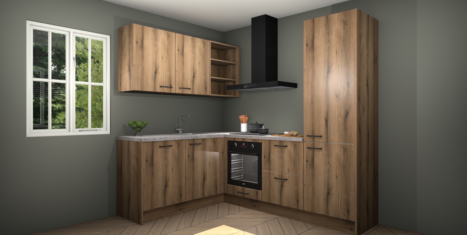Maak kennis met de Goud Eiken keuken Boekarest, een moderne hoekkeuken waar al uw vrienden en familie jaloers op zullen zijn! Het verbluffende mooie ontwerp past in elk interieur en is een ideale keuze voor wie op zoek is naar een klassieke, maar verfijnde look.