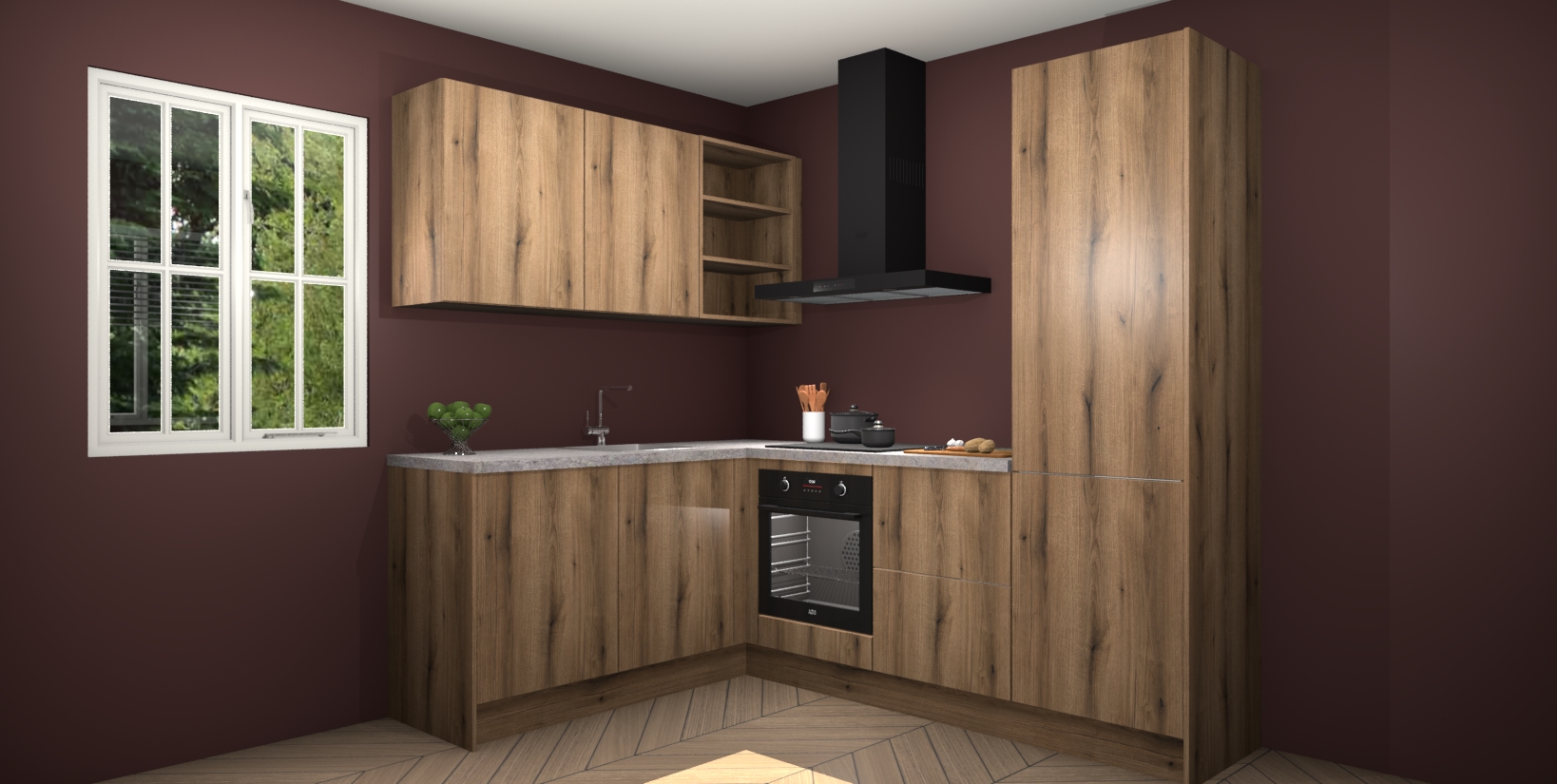 Maak kennis met de Goud Eiken keuken Boekarest, een moderne hoekkeuken waar al uw vrienden en familie jaloers op zullen zijn! Het verbluffende mooie ontwerp past in elk interieur en is een ideale keuze voor wie op zoek is naar een klassieke, maar verfijnde look.