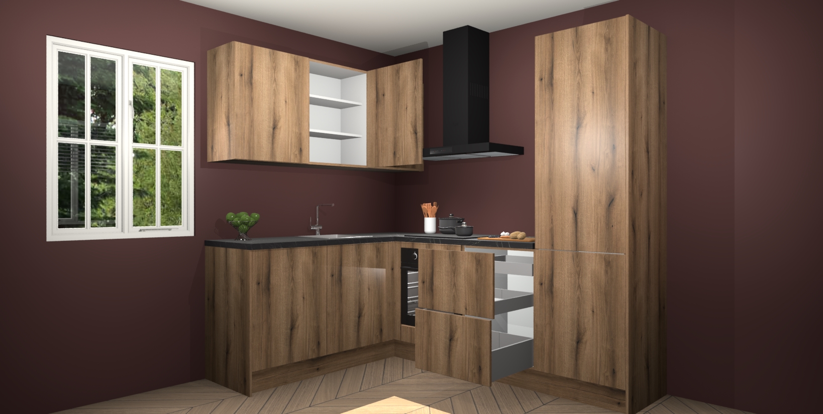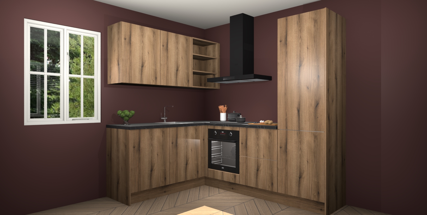 Maak kennis met de Goud Eiken keuken Boekarest, een moderne hoekkeuken waar al uw vrienden en familie jaloers op zullen zijn! Het verbluffende mooie ontwerp past in elk interieur en is een ideale keuze voor wie op zoek is naar een klassieke, maar verfijnde look.