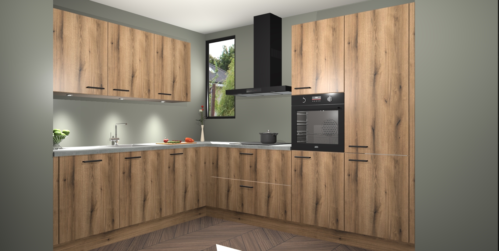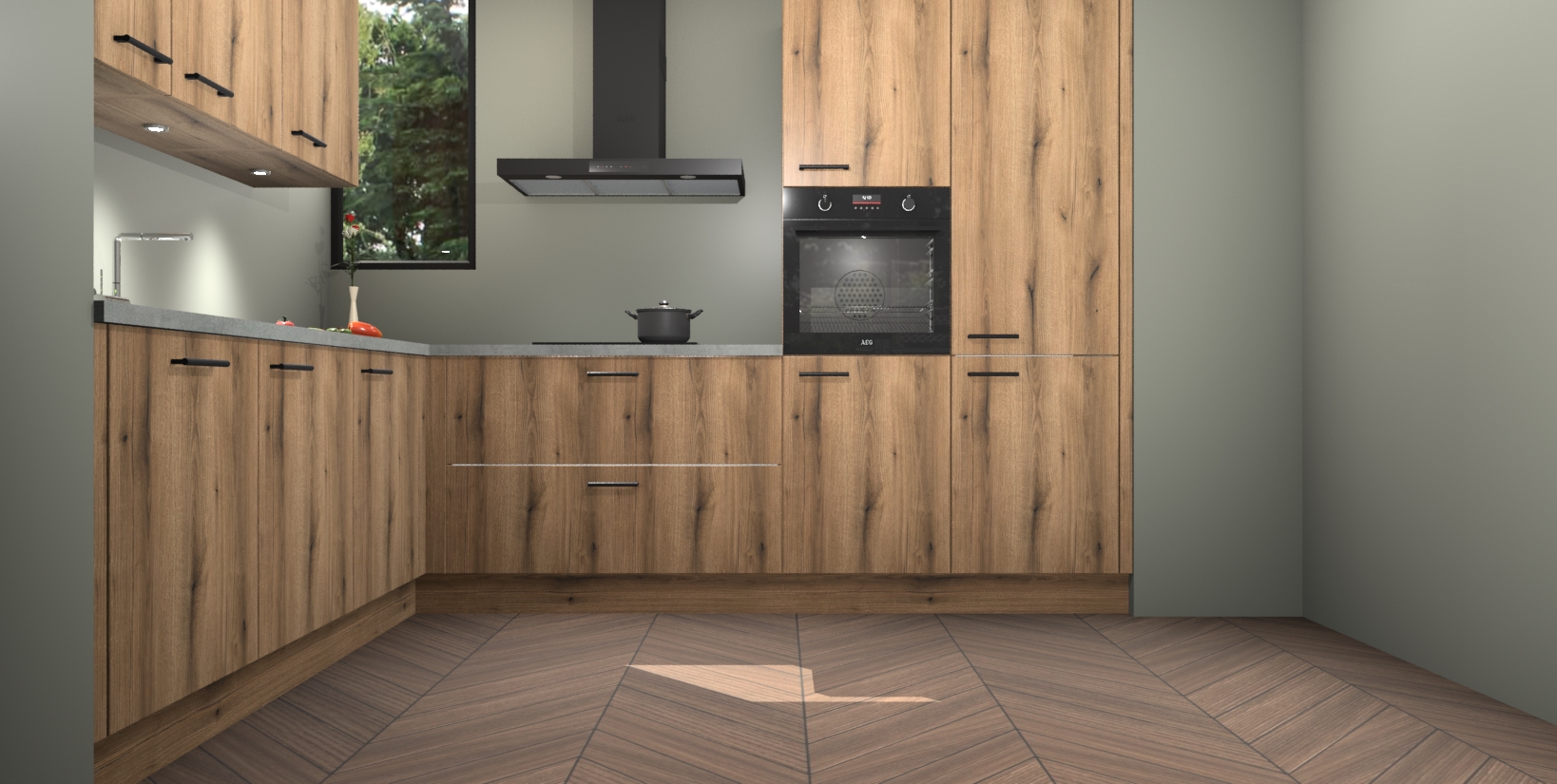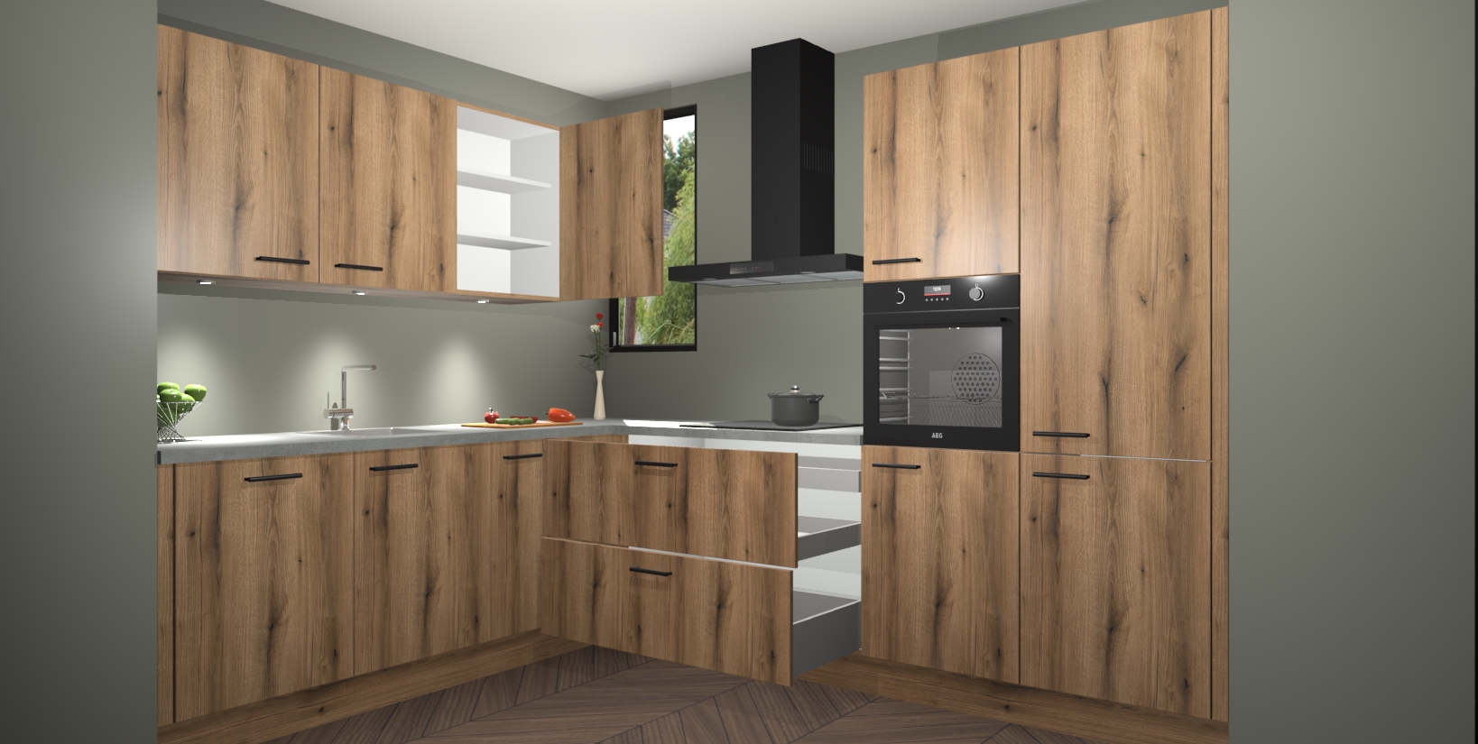 De ruime opbergruimte van dit model maakt het bereiden van voedsel en het gebruik van apparaten snel en gemakkelijk. Het beste van alles is dat het wordt geleverd met vijf inbouwapparaten: een oven, inductiekookplaat, afzuigkap, vaatwasser en koelkast - die allemaal gemakkelijk kunnen worden opgewaardeerd naar AEG na aankoop. Wat de gemaksfactor nog groter maakt, is het feit dat alle cabines voorgemonteerd worden geleverd, zodat u er meteen mee aan de slag kunt!