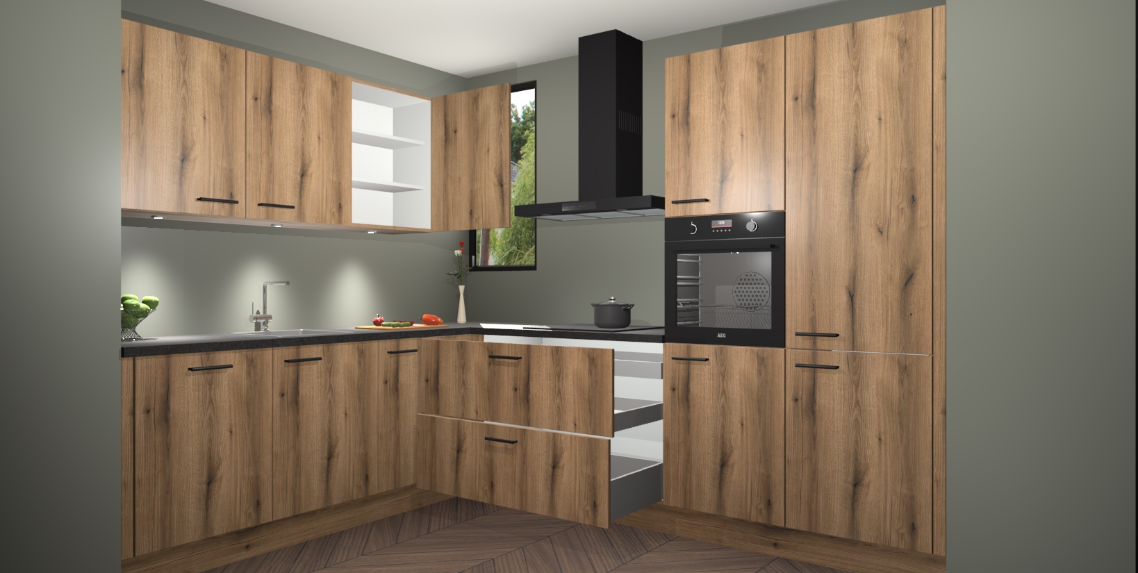 De ruime opbergruimte van dit model maakt het bereiden van voedsel en het gebruik van apparaten snel en gemakkelijk. Het beste van alles is dat het wordt geleverd met vijf inbouwapparaten: een oven, inductiekookplaat, afzuigkap, vaatwasser en koelkast - die allemaal gemakkelijk kunnen worden opgewaardeerd naar AEG na aankoop. Wat de gemaksfactor nog groter maakt, is het feit dat alle cabines voorgemonteerd worden geleverd, zodat u er meteen mee aan de slag kunt!