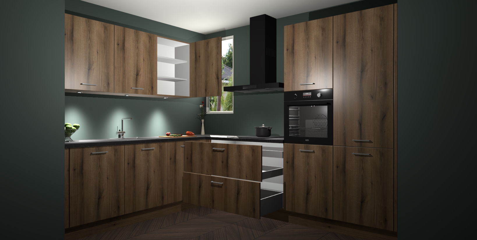 De ruime opbergruimte van dit model maakt het bereiden van voedsel en het gebruik van apparaten snel en gemakkelijk. Het beste van alles is dat het wordt geleverd met vijf inbouwapparaten: een oven, inductiekookplaat, afzuigkap, vaatwasser en koelkast - die allemaal gemakkelijk kunnen worden opgewaardeerd naar AEG na aankoop. Wat de gemaksfactor nog groter maakt, is het feit dat alle cabines voorgemonteerd worden geleverd, zodat u er meteen mee aan de slag kunt!