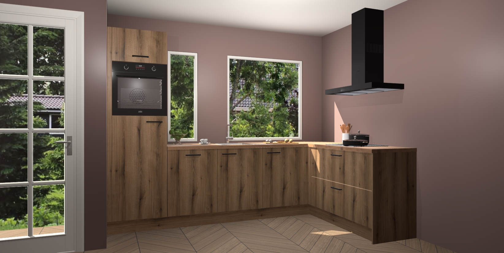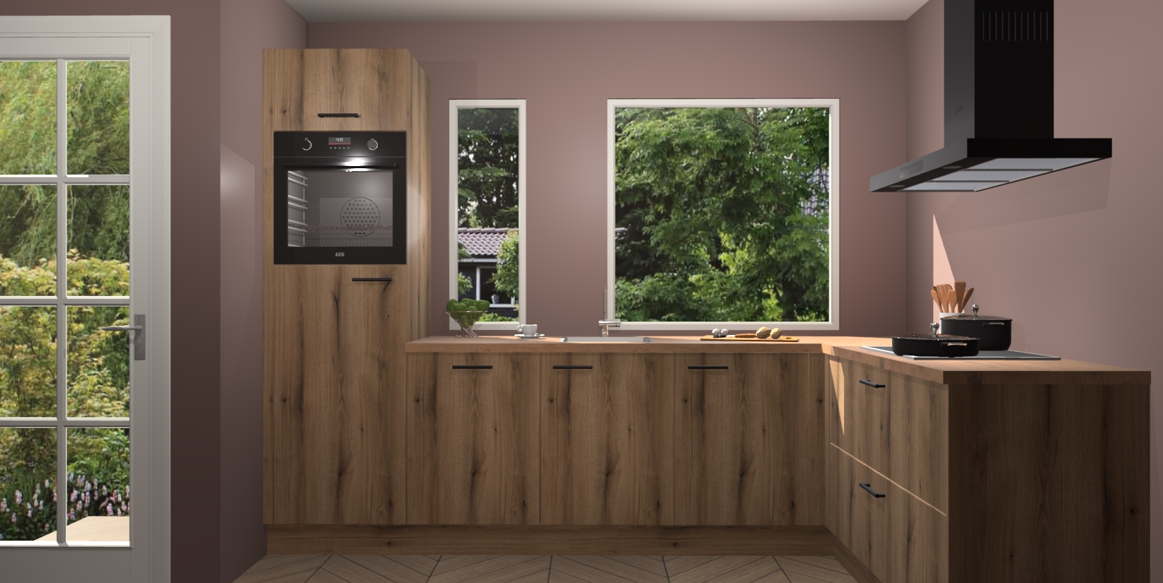 Deze complete keuken wordt geleverd met 5 inbouwapparaten: een oven, inductiekookplaat, afzuigkap, vaatwasser en koelkast. De toestellen kunnen na bestelling ook gemakkelijk worden opgewaardeerd naar AEG. Bovendien is elke deur in deze keuken voorzien van handige softclose technologie voor eenvoudig gebruik! Als een leuke toevoeging zit in deze keuken ook een carrousel, zo hoef je niet meer de hoek in duiken om iets te pakken.