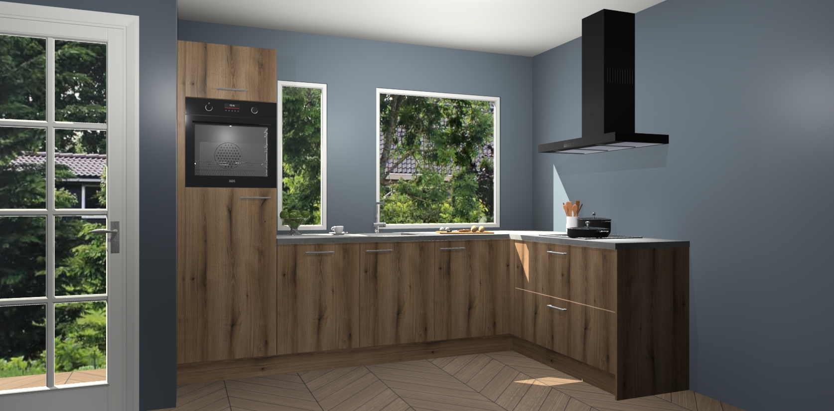 Deze complete keuken wordt geleverd met 5 inbouwapparaten: een oven, inductiekookplaat, afzuigkap, vaatwasser en koelkast. De toestellen kunnen na bestelling ook gemakkelijk worden opgewaardeerd naar AEG. Bovendien is elke deur in deze keuken voorzien van handige softclose technologie voor eenvoudig gebruik! Als een leuke toevoeging zit in deze keuken ook een carrousel, zo hoef je niet meer de hoek in duiken om iets te pakken.