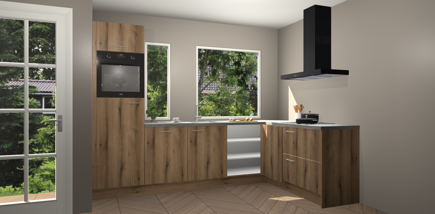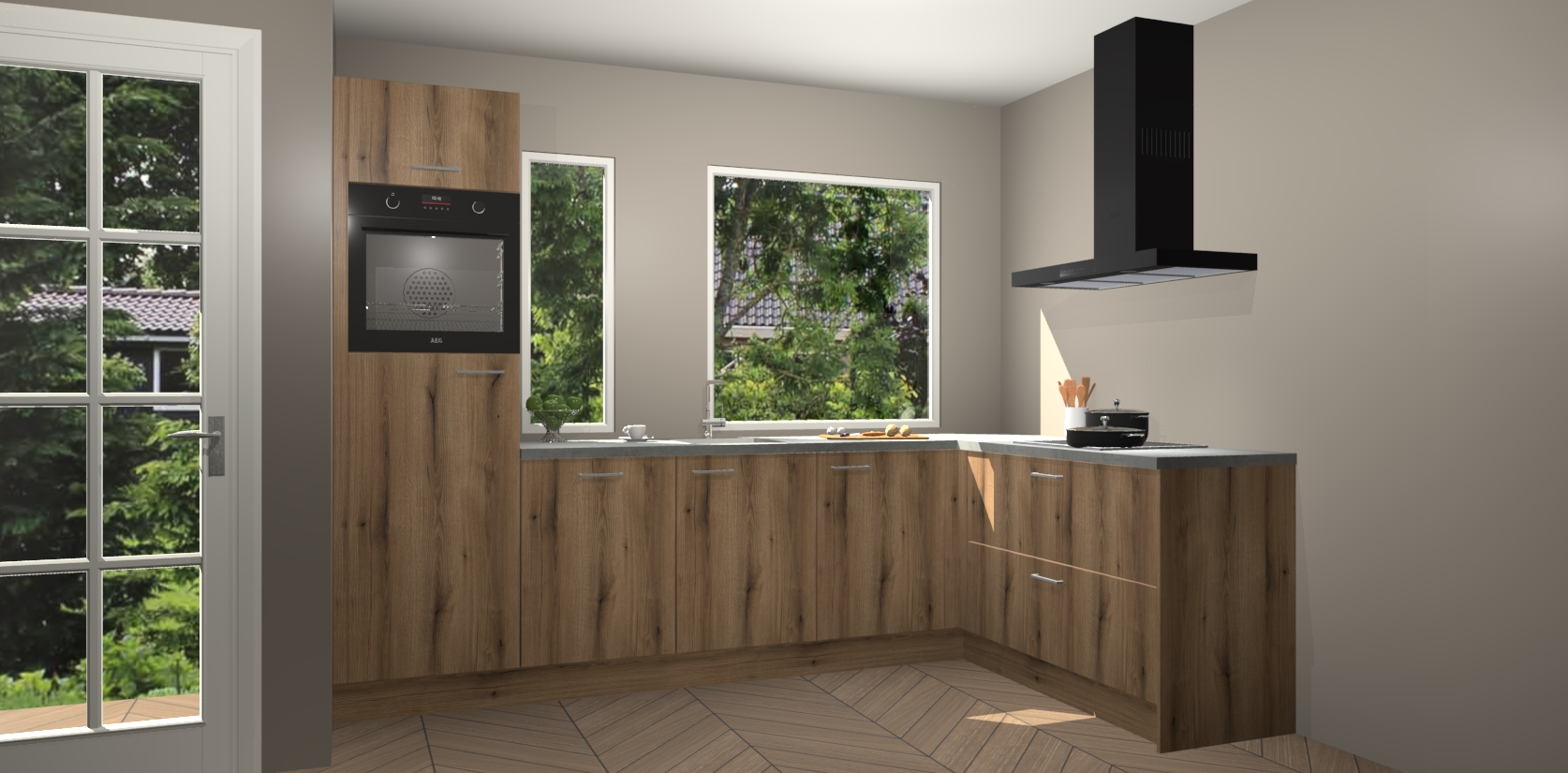 Deze complete keuken wordt geleverd met 5 inbouwapparaten: een oven, inductiekookplaat, afzuigkap, vaatwasser en koelkast.  De toestellen kunnen na bestelling ook gemakkelijk worden opgewaardeerd naar AEG. Bovendien is elke deur in deze keuken voorzien van handige softclose technologie voor eenvoudig gebruik! Als een leuke toevoeging zit in deze keuken ook een carrousel, zo hoef je niet meer de hoek in duiken om iets te pakken.