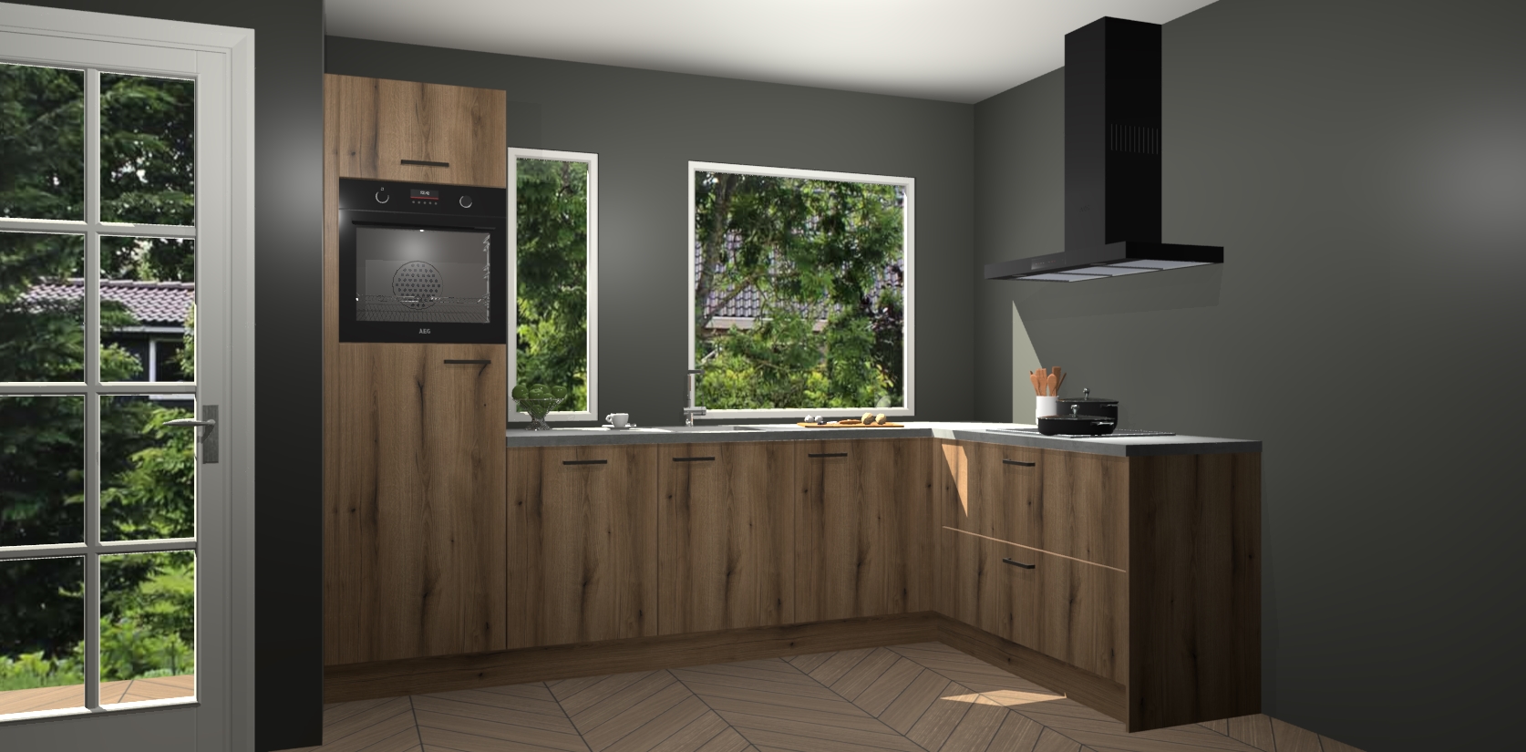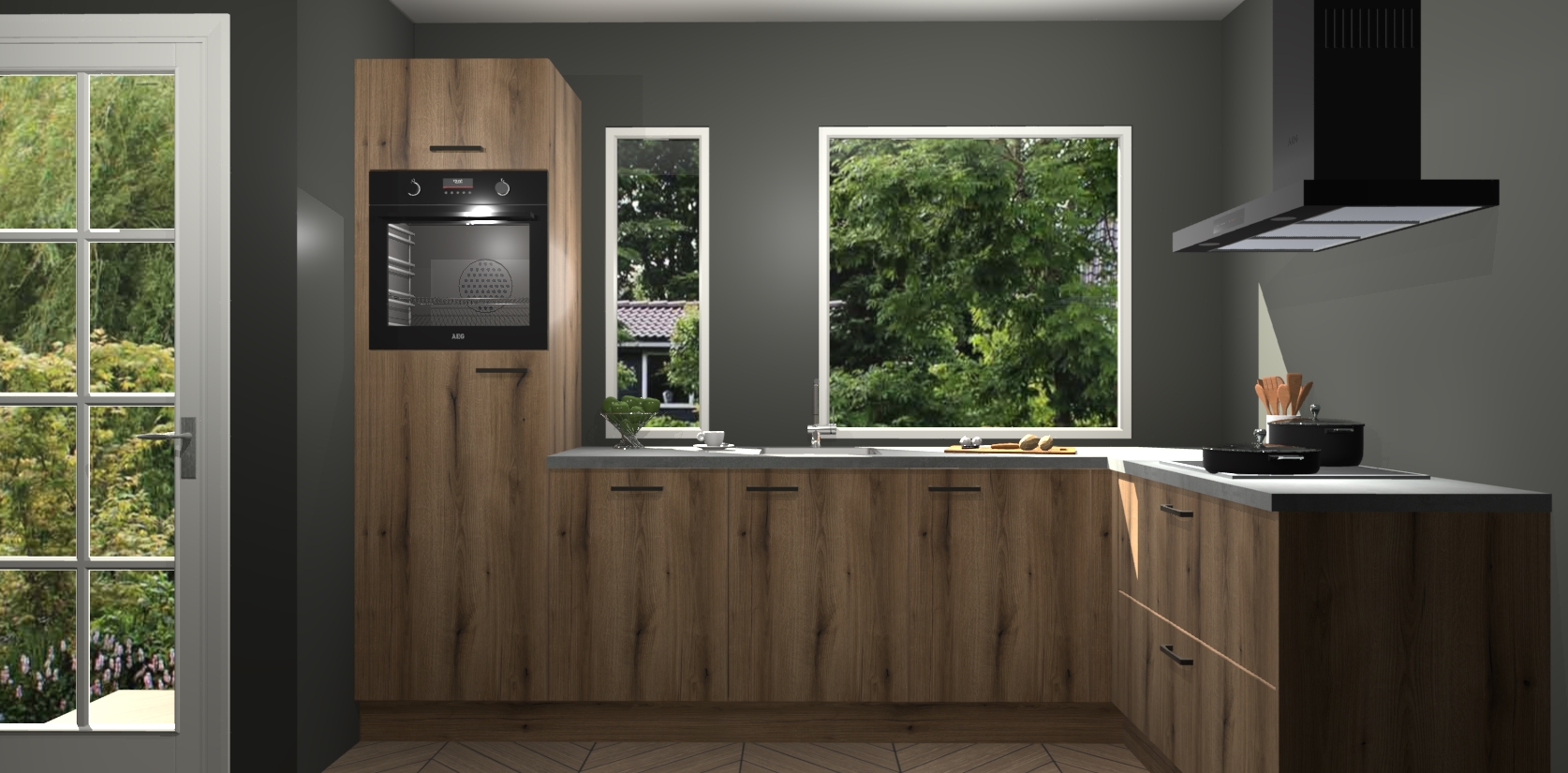 Deze complete keuken wordt geleverd met 5 inbouwapparaten: een oven, inductiekookplaat, afzuigkap, vaatwasser en koelkast. De toestellen kunnen na bestelling ook gemakkelijk worden opgewaardeerd naar AEG. Bovendien is elke deur in deze keuken voorzien van handige softclose technologie voor eenvoudig gebruik! Als een leuke toevoeging zit in deze keuken ook een carrousel, zo hoef je niet meer de hoek in duiken om iets te pakken.