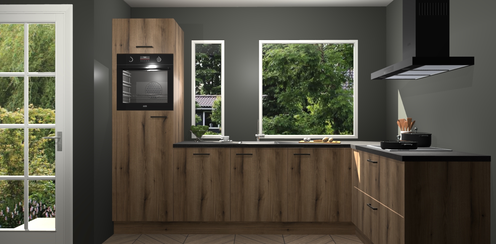 Deze complete keuken wordt geleverd met 5 inbouwapparaten: een oven, inductiekookplaat, afzuigkap, vaatwasser en koelkast. De toestellen kunnen na bestelling ook gemakkelijk worden opgewaardeerd naar AEG. Bovendien is elke deur in deze keuken voorzien van handige softclose technologie voor eenvoudig gebruik! Als een leuke toevoeging zit in deze keuken ook een carrousel, zo hoef je niet meer de hoek in duiken om iets te pakken.